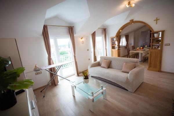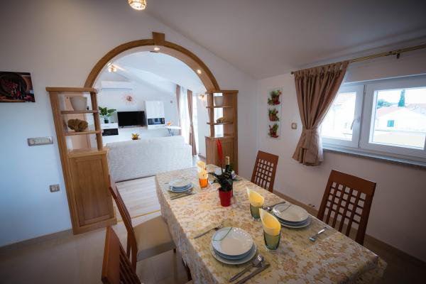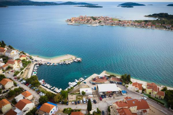 Apartament Marcela w miejscowości Brodarica koło Szybenika znajduje się 200 metrów od najbliższej kamienistej plaży i oferuje piękny widok na morze. Na promenadzie Brodarica znajduje się wiele kawiarni, barów szybkiej obsługi, pizzerii, restauracji i jedna z najlepszych (i oferująca rozsądne ceny) restauracji rybnych w Dalmacji – Konoba Dalmare, która znajduje się po drugiej stronie ulicy od naszego obiektu. Do miasta Szybenik można dojechać w zaledwie 10 minut, a do Parku Narodowego Krka – w 20 minut. Czterogwiazdkowy apartament Marcela przyjmuje gości od maja 2019 roku. Posiada 3 sypialnie, 3 łazienki, wszystkie pokoje wyposażone są w klimatyzację, 2 tarasy oraz w pełni wyposażoną kuchnię (naczynia i sztućce, kuchenka, płyta elektryczna, lodówka, zamrażarka, mikrofalówka, zmywarka...). Bezpłatne dodatki obejmują (bezpłatny parking, bezpłatny dostęp do bezprzewodowego Internetu, bezpłatną klimatyzację, bezpłatne sprzątanie końcowe, bezpłatne ręczniki i pościel).