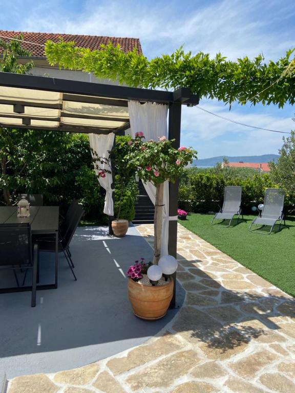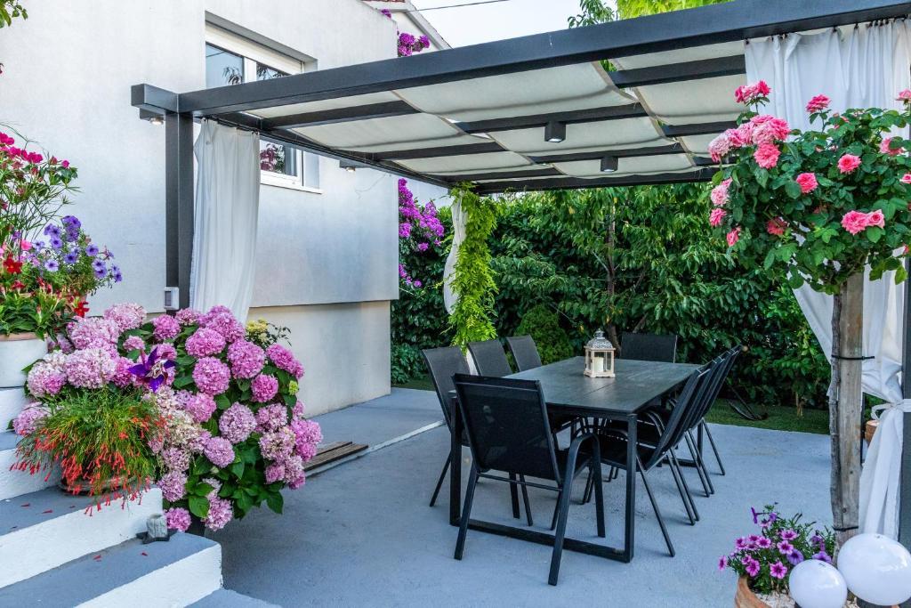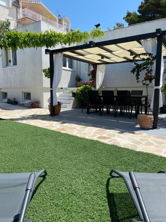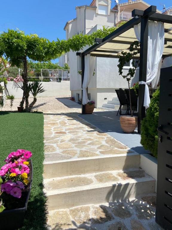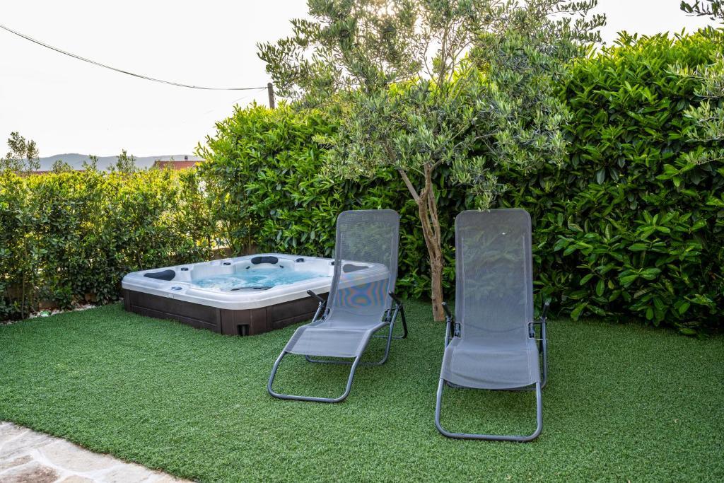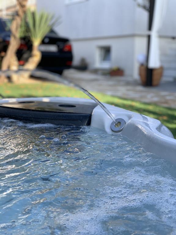 Nowoczesny apartament o powierzchni 85 m² na parterze domu z 2 sypialniami – jedną z łóżkiem małżeńskim o szerokości 180 cm, drugą z łóżkiem małżeńskim o szerokości 160 cm i rozkładaną sofą (dla 1 osoby dorosłej lub 2 dzieci). Na życzenie gości możliwe jest dostawienie łóżeczka dziecięcego. Przestronny salon z dużą rozkładaną sofą dla 2 osób, jadalnią, nowoczesną kuchnią ze zmywarką, lodówko-zamrażarką, piekarnikiem, kuchenką, wszystkimi niezbędnymi sprzętami AGD i naczyniami oraz jadalnią. Do dyspozycji Gości jest również duża łazienka z wanną i pralką. Taras przed domem z zadaszoną altaną i stołem z krzesłami, jacuzzi i leżakami oraz grillem w ogrodzie. Bezpłatny parking dla dwóch samochodów. Bezpłatne Wi-Fi. Klimatyzowany salon i obie sypialnie. Plaża znajduje się 150 m dalej od domu. Sklep znajduje się 100 m od domu. Na plaży znajdują się 3 bary/kawiarnie plażowe, z których jeden ma plac zabaw dla dzieci w cieniu. Ośrodek wypoczynkowy Solaris Beach Resort oddalony jest od domu o ok. 1 km. Na terenie obiektu znajduje się plaża, restauracje, aquapark oraz udogodnienia dla dzieci i dorosłych.