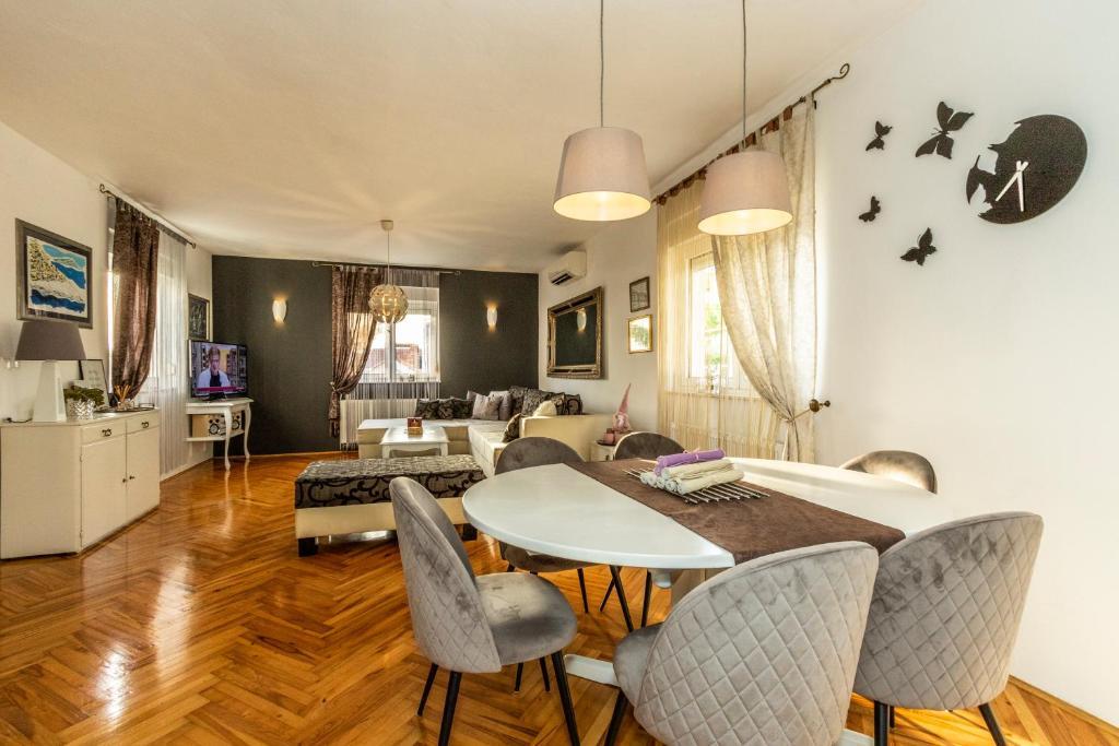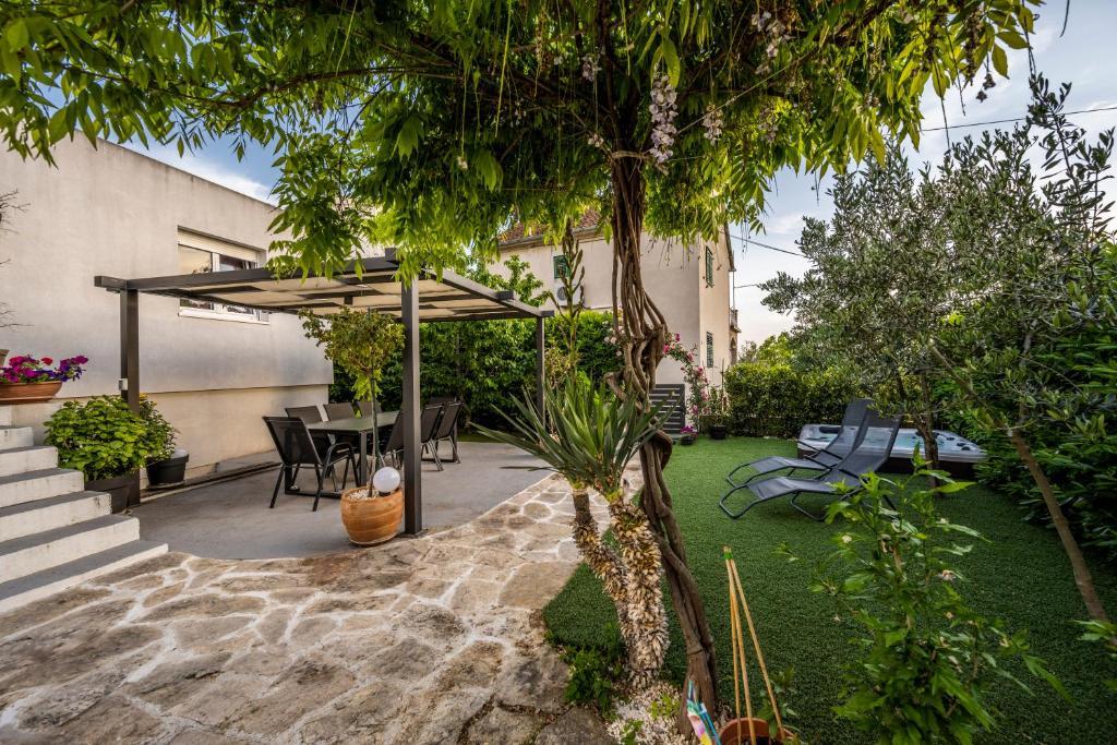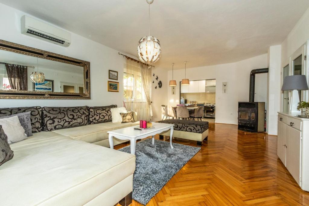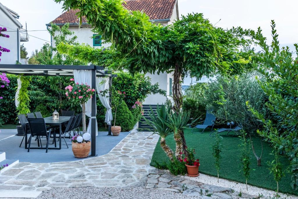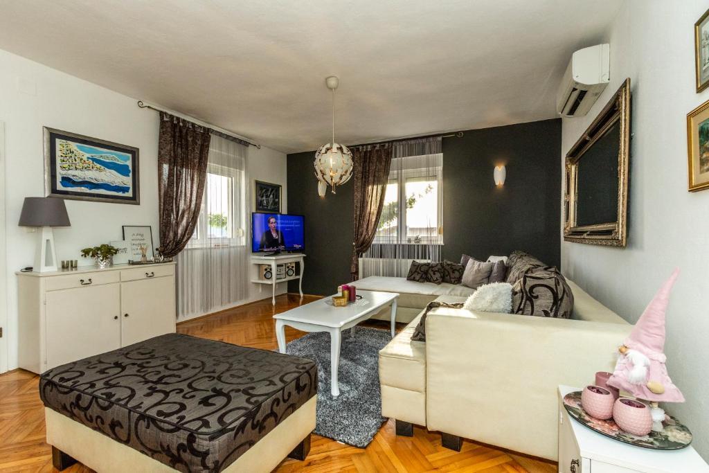 Nowoczesny apartament o powierzchni 85 m² na parterze domu z 2 sypialniami – jedną z łóżkiem małżeńskim o szerokości 180 cm, drugą z łóżkiem małżeńskim o szerokości 160 cm i rozkładaną sofą (dla 1 osoby dorosłej lub 2 dzieci). Na życzenie gości możliwe jest dostawienie łóżeczka dziecięcego. Przestronny salon z dużą rozkładaną sofą dla 2 osób, jadalnią, nowoczesną kuchnią ze zmywarką, lodówko-zamrażarką, piekarnikiem, kuchenką, wszystkimi niezbędnymi sprzętami AGD i naczyniami oraz jadalnią. Do dyspozycji Gości jest również duża łazienka z wanną i pralką. Taras przed domem z zadaszoną altaną i stołem z krzesłami, jacuzzi i leżakami oraz grillem w ogrodzie. Bezpłatny parking dla dwóch samochodów. Bezpłatne Wi-Fi. Klimatyzowany salon i obie sypialnie. Plaża znajduje się 150 m dalej od domu. Sklep znajduje się 100 m od domu. Na plaży znajdują się 3 bary/kawiarnie plażowe, z których jeden ma plac zabaw dla dzieci w cieniu. Ośrodek wypoczynkowy Solaris Beach Resort oddalony jest od domu o ok. 1 km. Na terenie obiektu znajduje się plaża, restauracje, aquapark oraz udogodnienia dla dzieci i dorosłych.