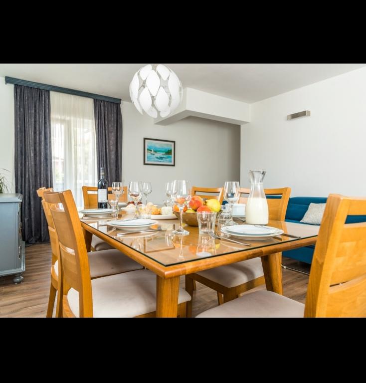 Mieszkanie jest naprawdę świetne na każdą rekomendację! Jest w pełni wyposażony, a szczególną ulgę po wyjściu z plaży zapewnia pralka, dzięki której można szybko wyprać sól ze strojów kąpielowych i tym podobnych według krótkiego programu. Nieoceniona pomoc również w zmywarce. Mieszkanie jest czyste, wygodne do wypoczynku oraz niezwykle duże i przestronne! Ładnie i gustownie urządzone. Posiada 3 sypialnie, z których 2 pokoje mają własną łazienkę z prysznicem, a trzecia łazienka jest największa obok trzeciej sypialni. A więc po wyjściu z plaży wszyscy w tym samym czasie pod prysznicem, wszyscy w łazience bez marnowania czasu i czekania w kolejce. Do plaży zaledwie 10 minut spacerkiem od apartamentu czyste morze, cisza i spokój na plaży z pięknym widokiem na wyspę Krapanj. Właścicielka apartamentu Ana jest bardzo miła i serdeczna, przywitała nas po przyjeździe i była ciekawa czy wszystko w porządku i czy wszystko pasuje W dniu przyjazdu przywitał nas schłodzony napój w lodówce; sok i świetne wino. Po wyjeździe przyjechała przywitać nas miłym prezentem na pamiątkę lata w Brodaricy i zamieszkać w swoim mieszkaniu. Wszystkie zalecenia dotyczące pobytu tutaj!