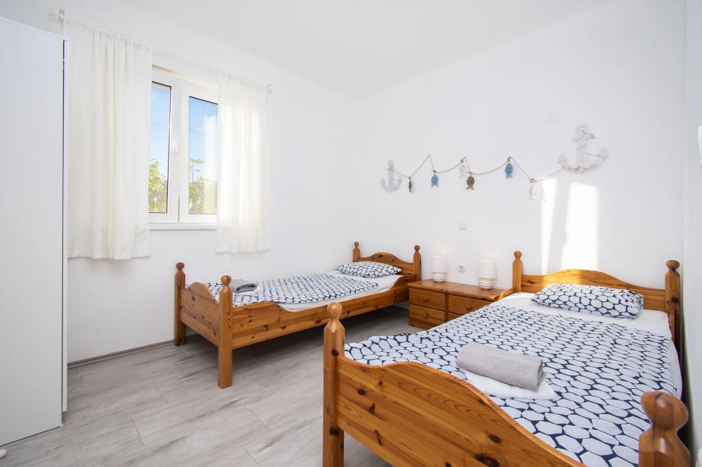 Wynajmujemy komfortowe apartamenty 2 plus 2 lub 4 plus 2, idealne na spokojny, rodzinny wypoczynek. Apartamenty znajdują się w Brodarica w prywatnym domu z tarasem i parkingiem. Jeden apartament składa się z sypialni z łóżkiem małżeńskim, łazienki oraz salonu z kuchnią i jadalnią. Drugi składa się z dwóch sypialni z łazienkami oraz salonu z kuchnią i jadalnią. Kuchnie wyposażone są w miejsce do gotowania i piekarnik elektryczny, a także naczynia do przygotowywania i serwowania potraw. Apartamenty są klimatyzowane, posiadają bezpłatny dostęp do Internetu, we wszystkich oknach znajdują się moskitiery, parking strzeżony na podwórzu. Odległość do plaży to minuta spaceru przez własne podwórko. W pobliżu znajduje się piekarnia, sklepy, restauracje, poczta, przychodnia, dworzec autobusowy z częstymi liniami do Szybenika.