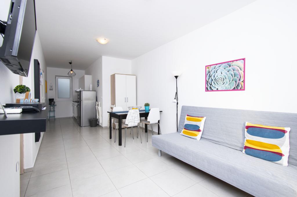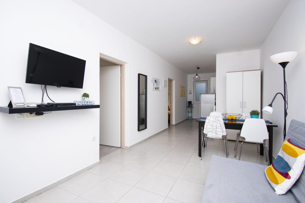 Mieszkanie ładne, duże i czyste, gospodarze to wspaniali ludzie i dbają o wszystko. Morze jest blisko i jest dyskrecja, ponieważ jest tylko jeden sąsiedni apartament, z którym dzielony jest taras. Najbardziej podobało nam się to, że morze było blisko i że wszystkie okna miały moskitiery. Łóżka są dobre (ani za miękkie, ani za twarde), łazienka jest duża i ma okno. Lokalizacja jest świetna, wszystko jest blisko. Przyjedziemy ponownie!