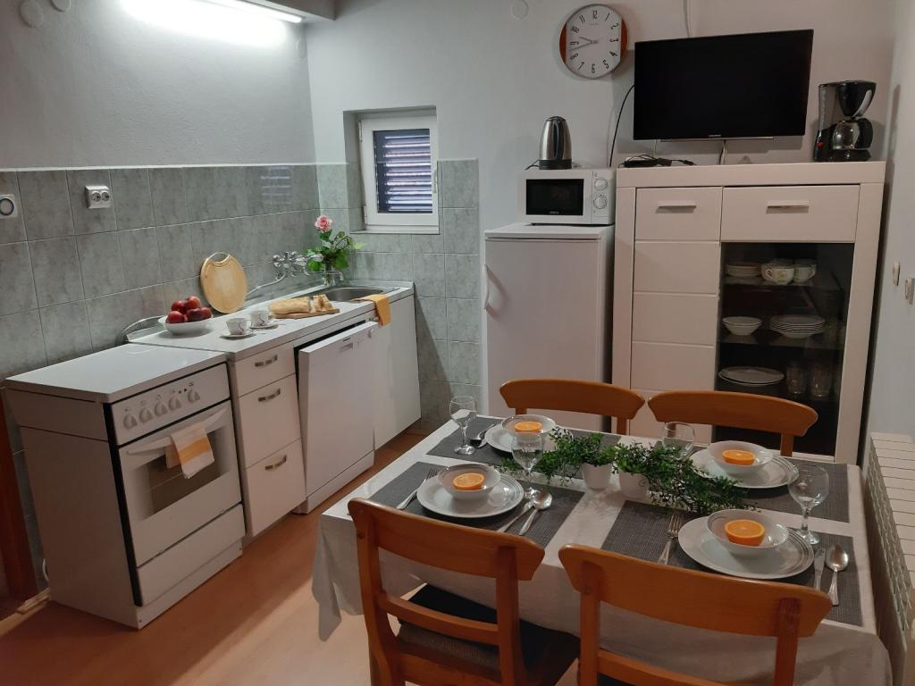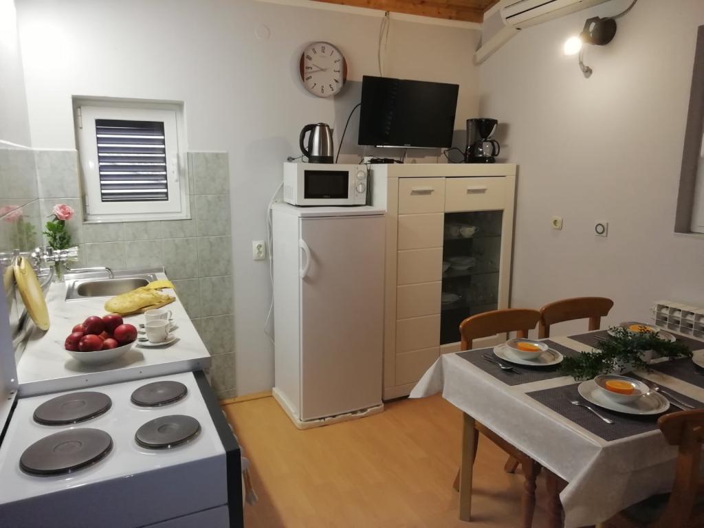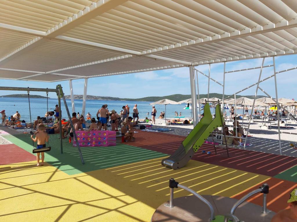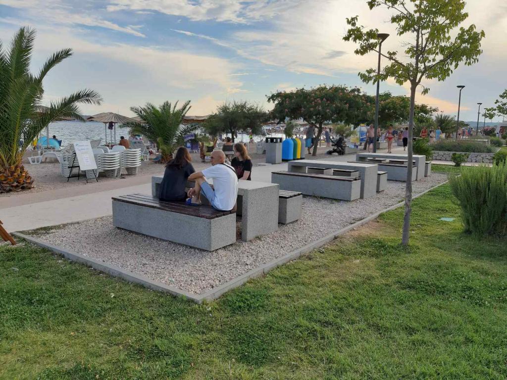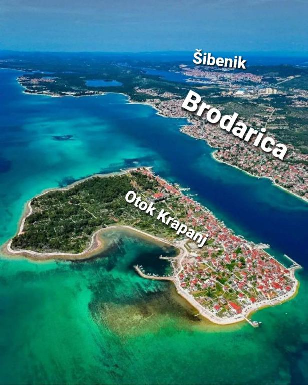 Apartamenty położone są w spokojnej części Brodaricy, 150 m (2 min. spacerem płaską, bez skarp) od głównej, kamienistej plaży. Obok znajduje się wiele mniejszych, kamienistych plaż, zapewniających większą prywatność. Dom otoczony jest zielenią i kwiatami, a do dyspozycji gości jest bezpłatny, zacieniony parking. Apartamenty są klimatyzowane, każdy pokój posiada własną łazienkę, duży taras/balkon z widokiem na morze i wyspy, wyposażoną kuchnię, zmywarkę, kuchenkę mikrofalową, grill, podgrzewacz wody, Wi-Fi oraz bezpłatny parking. Drzwi i okna zabezpieczone są moskitierami. 100 m od apartamentu znajduje się najbliższy sklep, piekarnia, fast food, kawiarnie. Duże centra handlowe z artykułami spożywczymi, odzieżą, obuwiem itp. znajdują się 2 km od apartamentu. Na plaży znajduje się zacieniony plac zabaw dla dzieci, boisko do siatkówki plażowej, koszykówki, sprzęt do ćwiczeń na świeżym powietrzu, toalety, prysznice, skutery wodne i wypożyczalnia łodzi. Apartament dla 4 osób posiada 2 sypialnie, 2 łazienki, kuchnię oraz duży taras z widokiem na morze i wyspy. Na tarasie znajdują się leżaki i grill.