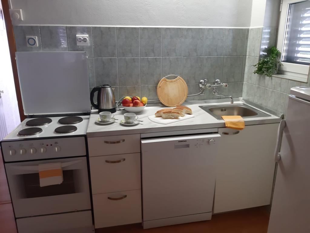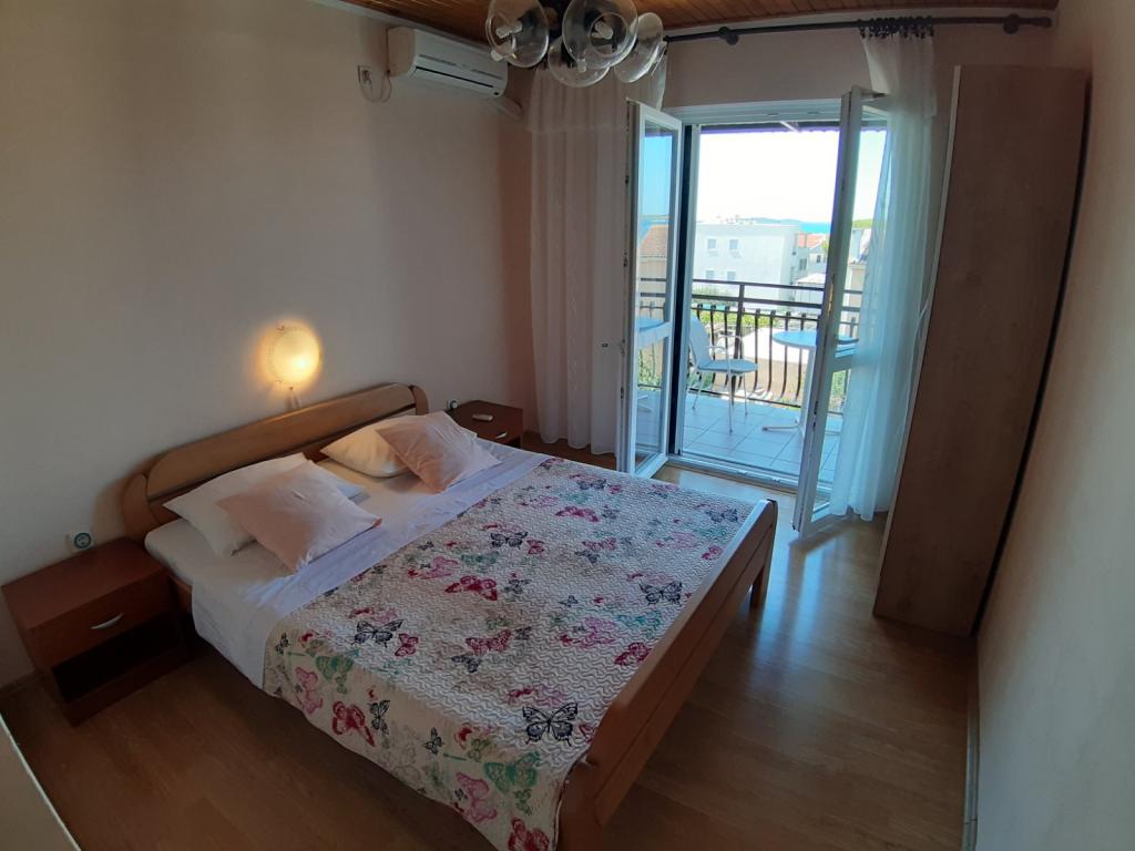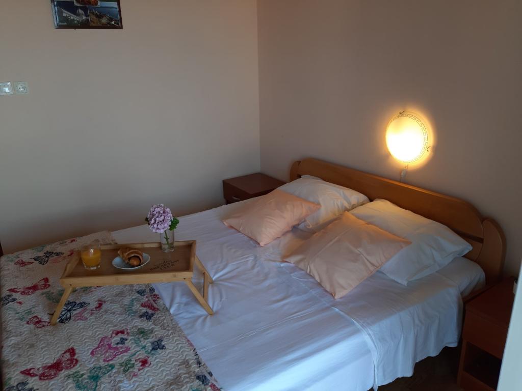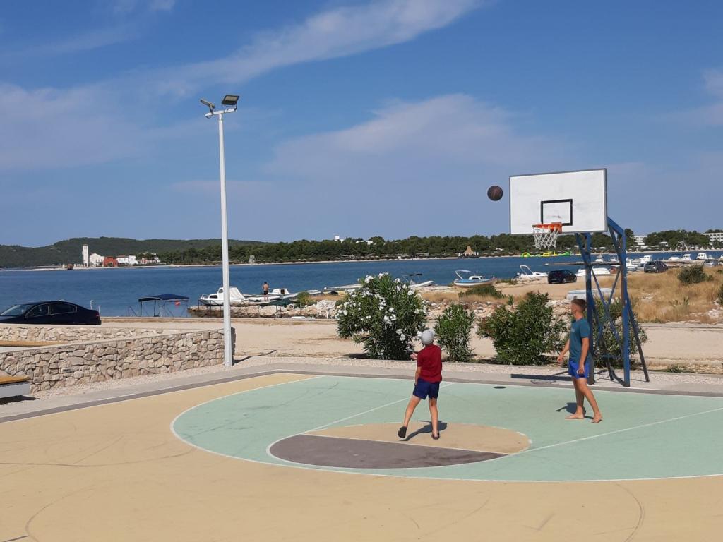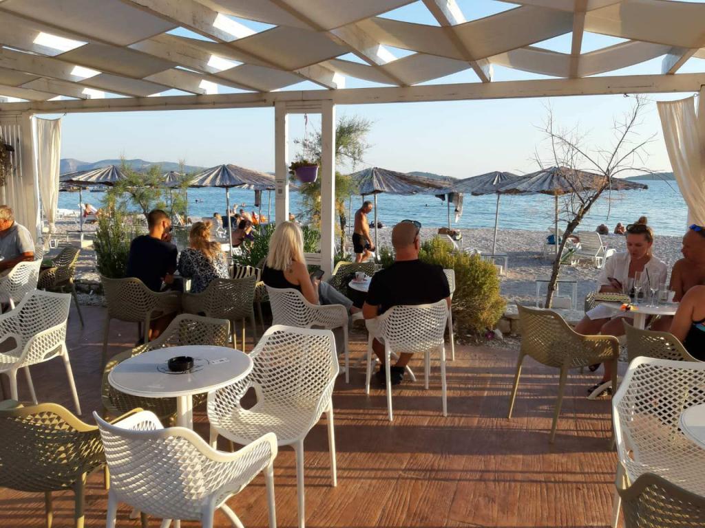 Apartamenty położone są w spokojnej części Brodaricy, 150 m (2 min. spacerem płaską, bez skarp) od głównej, kamienistej plaży. Obok znajduje się wiele mniejszych, kamienistych plaż, zapewniających większą prywatność. Dom otoczony jest zielenią i kwiatami, a do dyspozycji gości jest bezpłatny, zacieniony parking. Apartamenty są klimatyzowane, każdy pokój posiada własną łazienkę, duży taras/balkon z widokiem na morze i wyspy, wyposażoną kuchnię, zmywarkę, kuchenkę mikrofalową, grill, podgrzewacz wody, Wi-Fi oraz bezpłatny parking. Drzwi i okna zabezpieczone są moskitierami. 100 m od apartamentu znajduje się najbliższy sklep, piekarnia, fast food, kawiarnie. Duże centra handlowe z artykułami spożywczymi, odzieżą, obuwiem itp. znajdują się 2 km od apartamentu. Na plaży znajduje się zacieniony plac zabaw dla dzieci, boisko do siatkówki plażowej, koszykówki, sprzęt do ćwiczeń na świeżym powietrzu, toalety, prysznice, skutery wodne i wypożyczalnia łodzi. Apartament dla 4 osób posiada 2 sypialnie, 2 łazienki, kuchnię oraz duży taras z widokiem na morze i wyspy. Na tarasie znajdują się leżaki i grill.