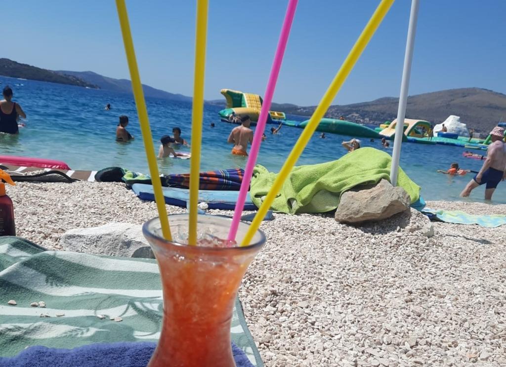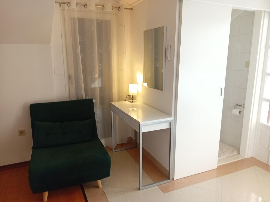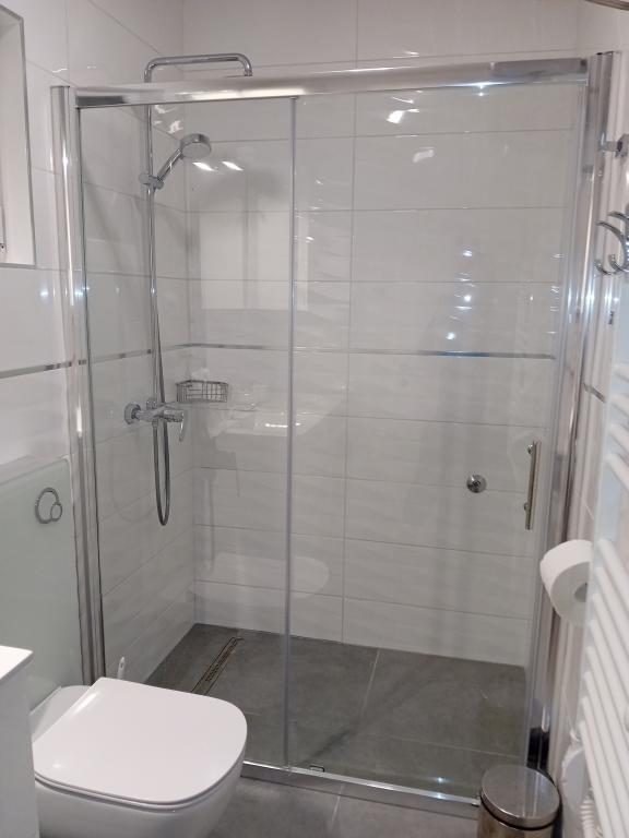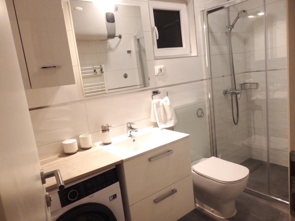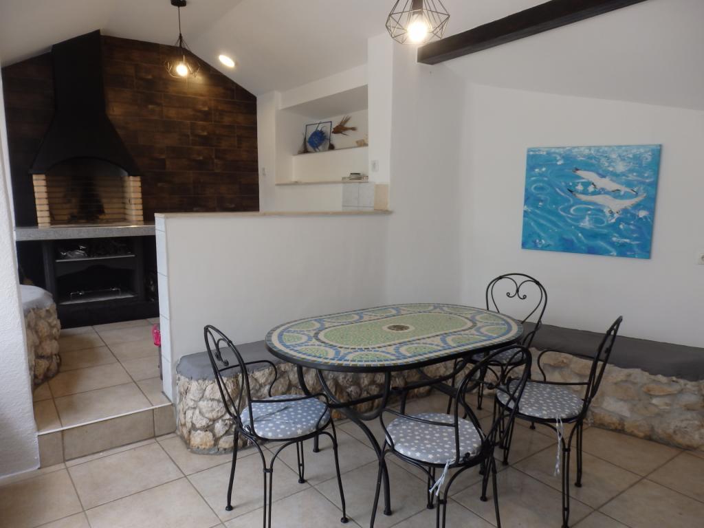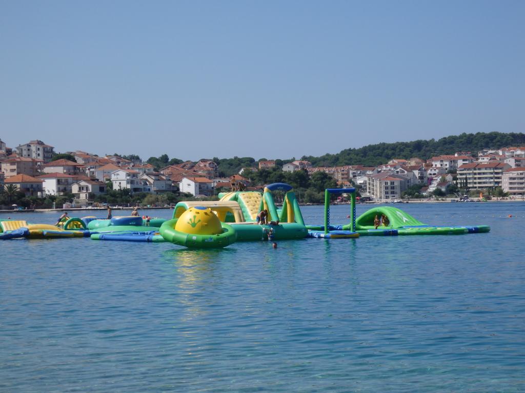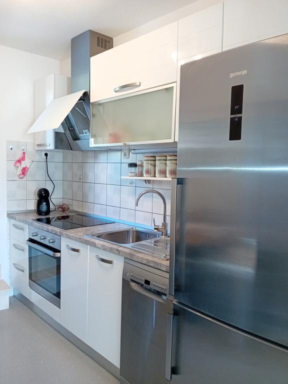 Nowocześnie wyposażony apartament z widokiem na morze, dużym tarasem i ogrodem, blisko plaży, 4 gwiazdki. Apartament znajduje się w domu (parter i pierwsze piętro). Na parterze znajduje się: przedpokój, kuchnia, salon i łazienka. Salon wyposażony jest w rozkładaną sofę dla dwóch osób. Na piętrze znajduje się: sypialnia, łazienka (z oddzielnym prysznicem i toaletą) oraz zadaszony balkon o powierzchni 10 m² z widokiem na morze. W sypialni znajduje się wygodne łóżko małżeńskie oraz fotel, który można rozłożyć jako łóżeczko dziecięce. Kuchnia na parterze prowadzi na taras o powierzchni 45 m². Grill i stół jadalny znajdują się w zadaszonej części (15 m²), a pozostała część to miejsce do opalania i relaksu z widokiem na ogród.