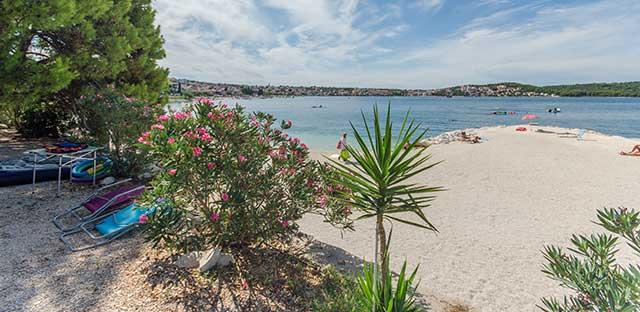 Na pobliskiej plaży można wypożyczyć łódkę, skuter, rower wodny, leżaki i parasole lub wybrać się na zorganizowane wycieczki na pobliskie wyspy. Istnieje również linia promowa do Trogiru, która kursuje codziennie co 20 minut.