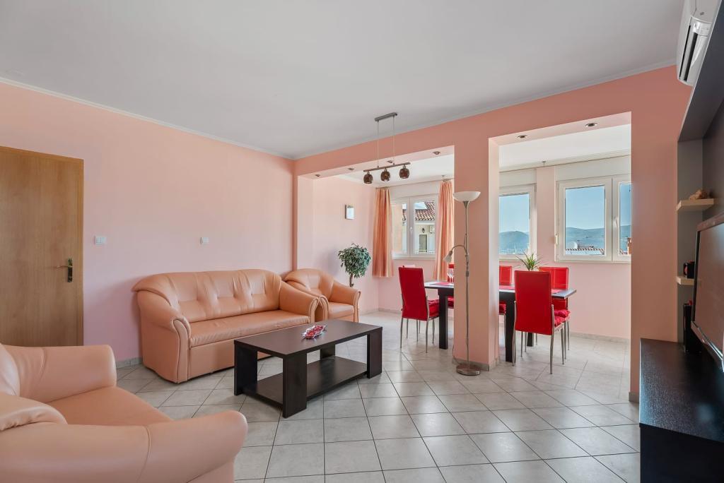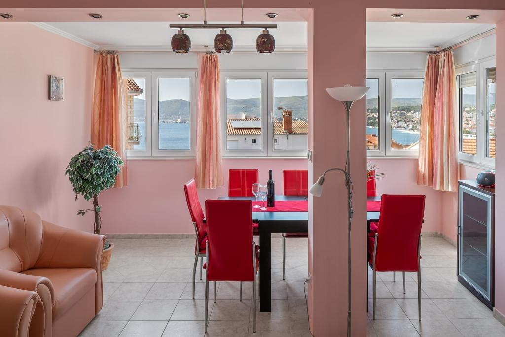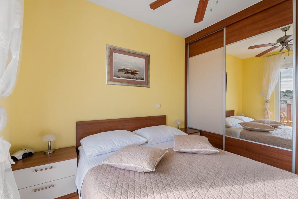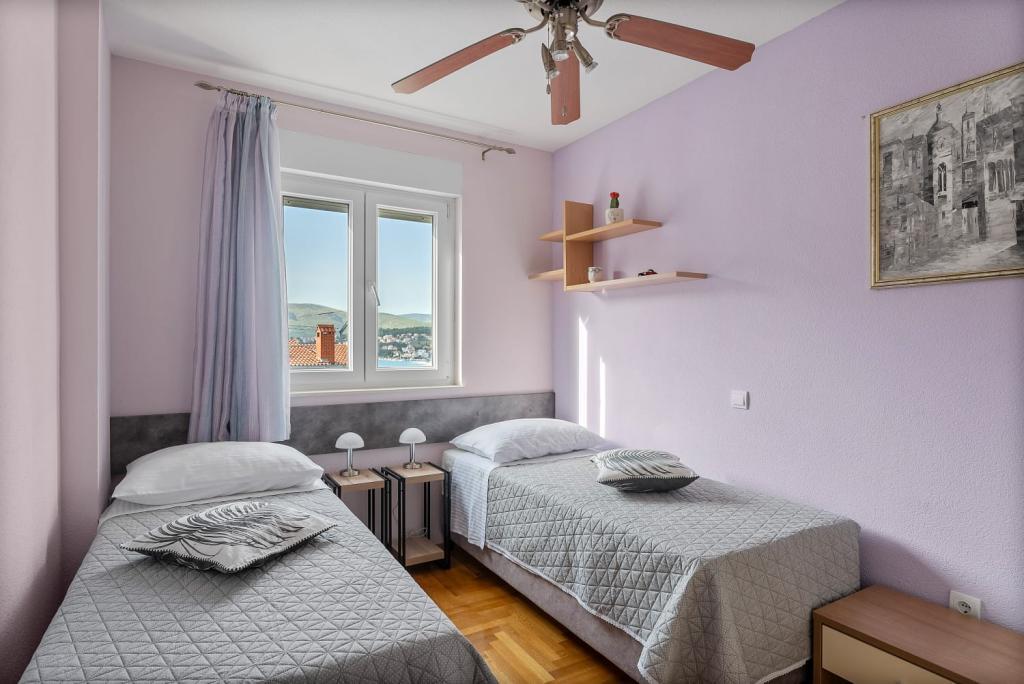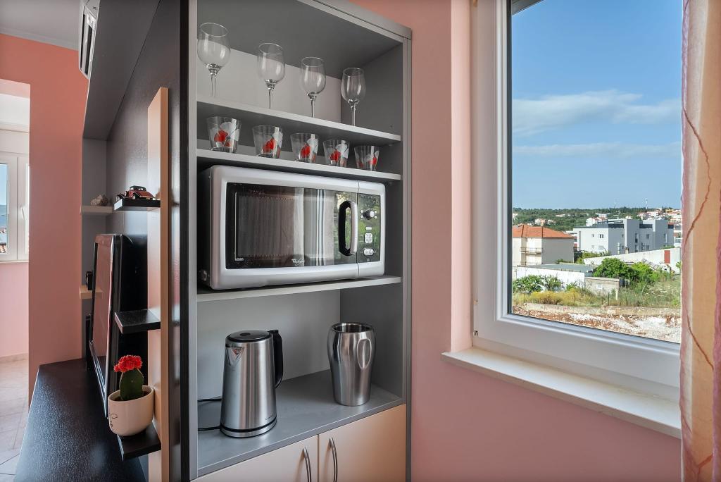 Apartament Summer memories to przestronny i nowocześnie urządzony apartament na 2 piętrze budynku z widokiem na morze, 15 minut samochodem od międzynarodowego lotniska. Apartament położony jest w pobliżu pięknych kamienistych plaż, które rozciągają się aż do starego miasta Trogir. Najbliższa plaża oddalona jest o 4 minuty spacerem. Apartament posiada balkon, na którym można delektować się poranną kawą i widokiem na morze. Posiada dwie sypialnie, w tym jedną z możliwością połączenia dwóch łóżek w jedno łóżko podwójne. W apartamencie znajdują się 2 klimatyzatory. Przed budynkiem znajduje się bezpieczne miejsce parkingowe dla Twojego pojazdu. W pobliżu znajdują się: supermarket, kawiarnie i restauracje na plaży.