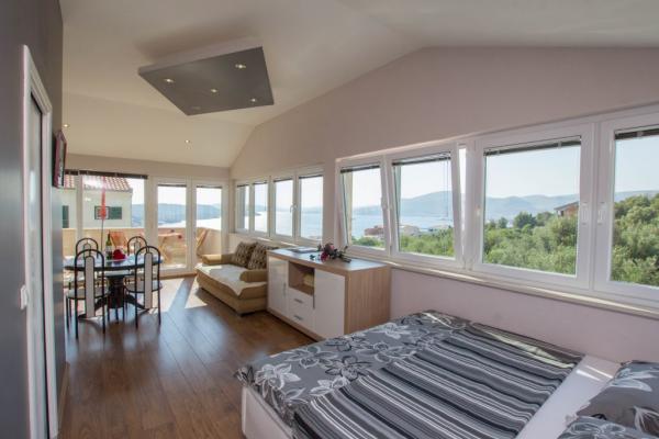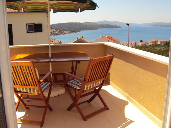 Na przełomie czerwca i lipca mieszkaliśmy w Apartamencie (Studio). Widok przepiękny na sam Adriatyk i Trogir. Wspaniała baza wypadowa do Splitu, Szybenika, na wodospady Krka itp. Lodówka była zapchana jedzeniem, dzieci dostawały lody, miejsce i ludzie cudowni. dziękujemy= hvala