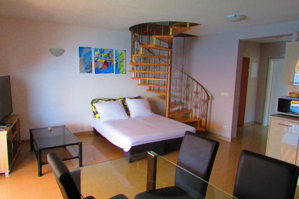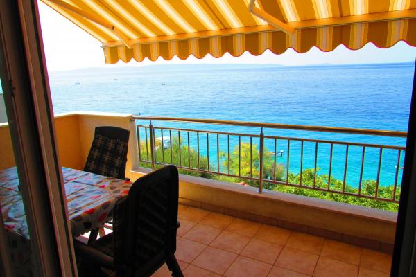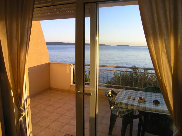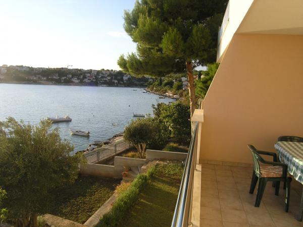 Apartamenty położone są tuż nad brzegiem morza. Piękny widok na wyspę Solta.