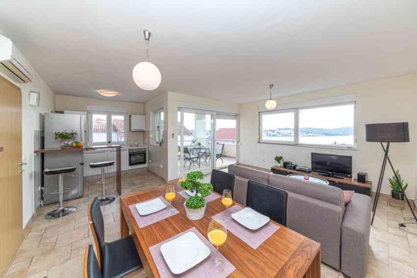 APARTAMENT GLAVICA znajduje się w Okrug Gornji (Put Putik Planikovica 10) Apartament znajduje się 250 metrów od morza. Apartament składa się z 1 sypialni z podwójnym łóżkiem, łazienki z prysznicem, kuchni, klimatyzowanego salonu z rozkładaną kanapą i małego balkonu z widokiem na morze. Mieszkanie ma również miejsce parkingowe nad budynkiem. Apartament GLORIA i apartament MARINA znajdują się w nowoczesnym budynku przy ul. Tudorskiej 34 / A i są 200-300 metrów od głównej plaży w Okrug Gornji. Mają cały sprzęt i treści potrzebne do przyjemnego pobytu i wakacji. Oba apartamenty mają przestronne tarasy z widokiem na morze. Apartamenty mają również miejsce parkingowe przed budynkiem. APARTAMENT DORIS znajduje się przy ulicy Planikovica III 2A, składa się z 2 sypialni, łazienki, salonu i kuchni, tarasu z widokiem na morze i garażu. APARTAMENT CHORWACJI ZNAJDUJE SIĘ W DOBREJ PRZESTRZENI SEGET DONJI I WSZYSTKICH 200 METRÓW WYRÓŻNIONYCH OD MORZA.