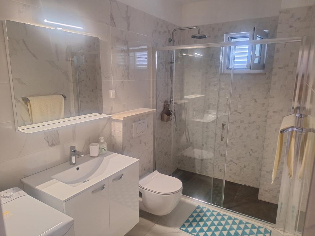 Apartament był schludny i czysty po przyjeździe, całkowicie zgodny ze zdjęciami i opisem w ogłoszeniu. Jest przestronny, nowoczesny i przyjemny w pobycie, łóżka są bardzo wygodne, kuchnia dobrze wyposażona, a duży taras z pięknym widokiem robi wyjątkowe wrażenie. Dodatkowym atutem jest bezpieczny, zamykany parking. Lokalizacja jest świetna, plaża znajduje się zaledwie 2 minuty spacerem od obiektu. Chociaż jest kamienista, to nam odpowiadało, a w pobliżu znajdują się plaże odpowiednie dla dzieci, do których można łatwo dotrzeć pieszo. Ponadto wyspa oferuje wiele innych plaż, więc wybór jest ogromny. W bezpośrednim sąsiedztwie znajduje się duży targ Tommy, a centrum Okrugu z apteką, piekarnią, pocztą i wszelkimi innymi udogodnieniami jest również bardzo blisko. Do Trogiru można łatwo dojechać samochodem lub łodzią, gdzie można zrobić duże zakupy lub zwiedzić miasto. Gospodarze byli bardzo przyjaźni i zawsze dostępni, ale dyskretni, co było dla nas szczególnie wygodne. Podsumowując, apartament i gospodarze w pełni spełnili nasze oczekiwania i byli zgodni z opisem. Zdecydowanie polecamy!