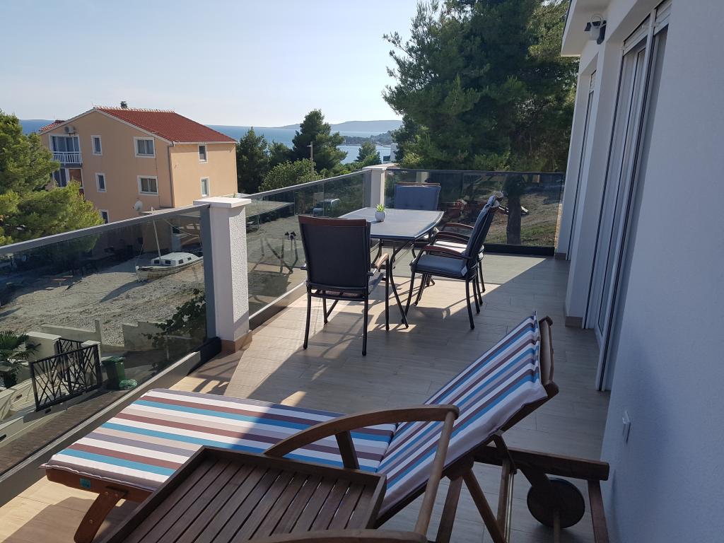 Apartamenty Ivan znajdują się w Okrug Gornji na wyspie Čiovo, która jest połączona mostem z historycznym miastem Trogir (UNESCO).Trogir jest dobrze połączony ze wszystkimi głównymi chorwackimi i europejskimi miastami drogą powietrzną, lądową lub morską.Lotnisko Split jest tylko 5 km.miasto Split jest 30 km, a my jesteśmy 4 km od centrum Trogiru i tylko 60 m od morza, co jest kolejnym dowodem naszej dostępności i idealnej lokalizacji.dostępny z salonu i sypialni. Z nich roztacza się piękny widok na morze i wyspy Brač, Hvar, Šolta, Drvenik.Plaża jest odpowiednia dla dorosłych i małych dzieci, ponieważ ma głębszą i płytszą część.Parking jest zapewniony dla wszystkich naszych gości, a transfer lotnisko w Splicie - Apartamenty Ivan zapewnione Jeśli chcesz spędzić wakacje w spokoju, bez hałasu samochodów i ruchu ulicznego, apartamenty Ivan są idealnym miejscem dla Ciebie. Rodzina Sedlar życzy miłego pobytu