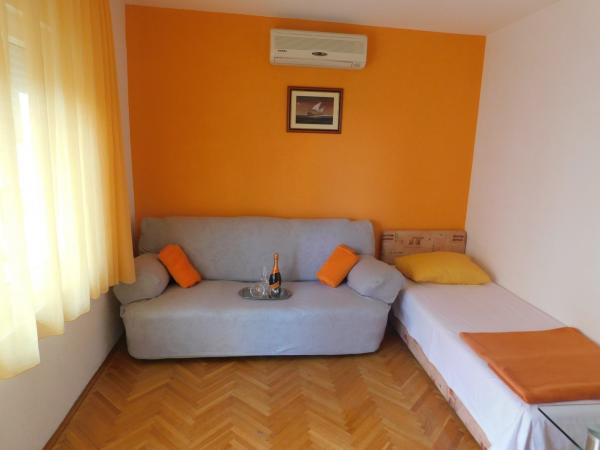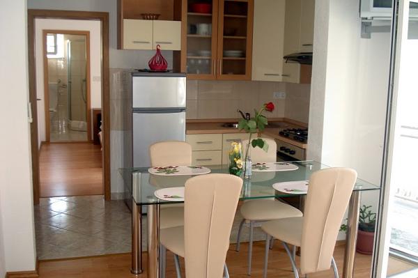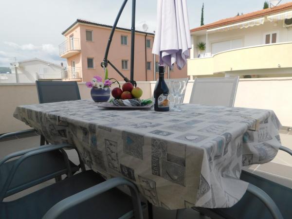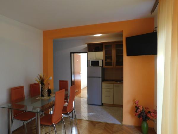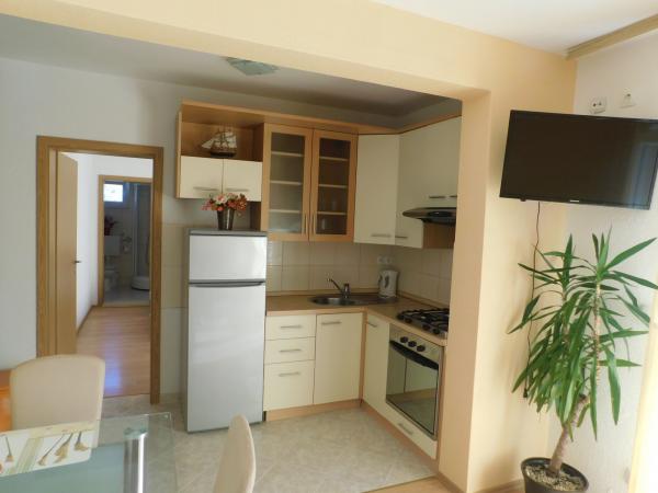 Apartamenty znajdują się w rodzinnym domu, w odległości 30 metrów od plaży. Są nowocześnie wyposażone i atmosfera, wypełniona komfort i prywatność. Składają się z 4 nowych mieszkań. Dom posiada duży parking oraz grill, który pozwala cieszyć się tradycyjne specjały kuchni dalmatyńskiej i autentyczną atmosferę. Zaledwie kilka metrów od apartamentu znajduje się plaża żwirowa, plac zabaw dla dzieci, a także liczne bary i restauracje.