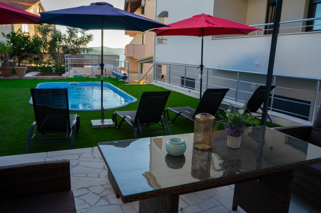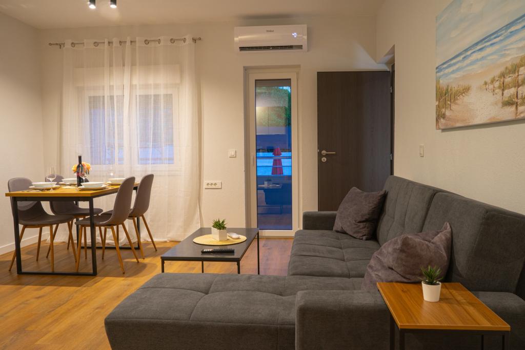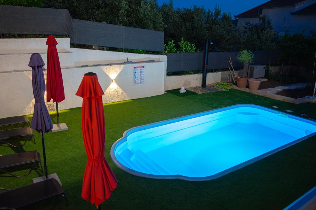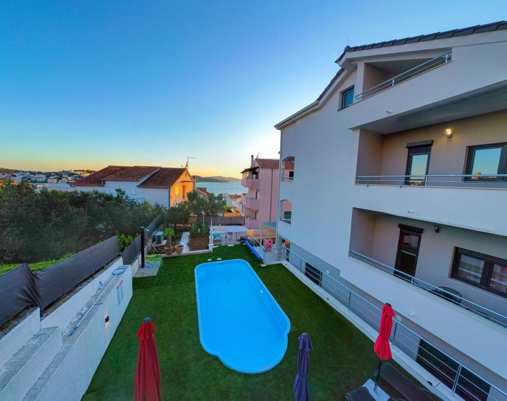 Witamy w apartamentach Neli, położonych na urokliwej wyspie Čiovo, połączonej z lądem dwoma mostami. Zaledwie 2,5 km od zabytkowego miasta Trogir. Nowo wyremontowany budynek, całkowicie odnowiony w 2023 roku. Luksusowe, nowoczesne, nowocześnie urządzone apartamenty. Pokoje są komfortowe i elegancko urządzone, a łóżka wyposażone są w nowe, ergonomiczne materace. Kuchnie są w pełni wyposażone w nowoczesne sprzęty AGD, zmywarkę i wszystko, czego potrzebujesz do przygotowania posiłków. W każdej łazience znajduje się pralka. Każdy apartament posiada balkon z widokiem na morze, idealny na relaks. Dodatkowo do dyspozycji Gości jest podgrzewany basen, leżaki, prysznic solarny, grill na świeżym powietrzu do przygotowywania niezapomnianych przysmaków oraz prywatny, monitorowany parking. Plaża, restauracje i sklepy znajdują się 200 metrów od apartamentu, 7 minut spacerem. Apartamenty Neli oferują wszystko, czego potrzebujesz na komfortowy wypoczynek i niezapomniane wspomnienia.
