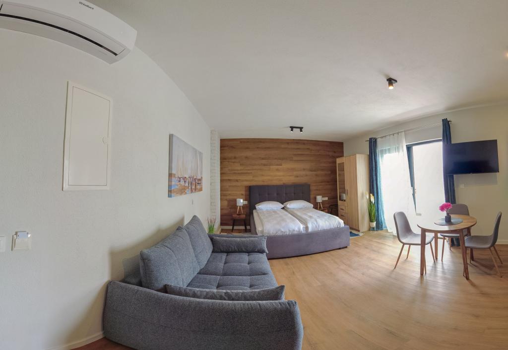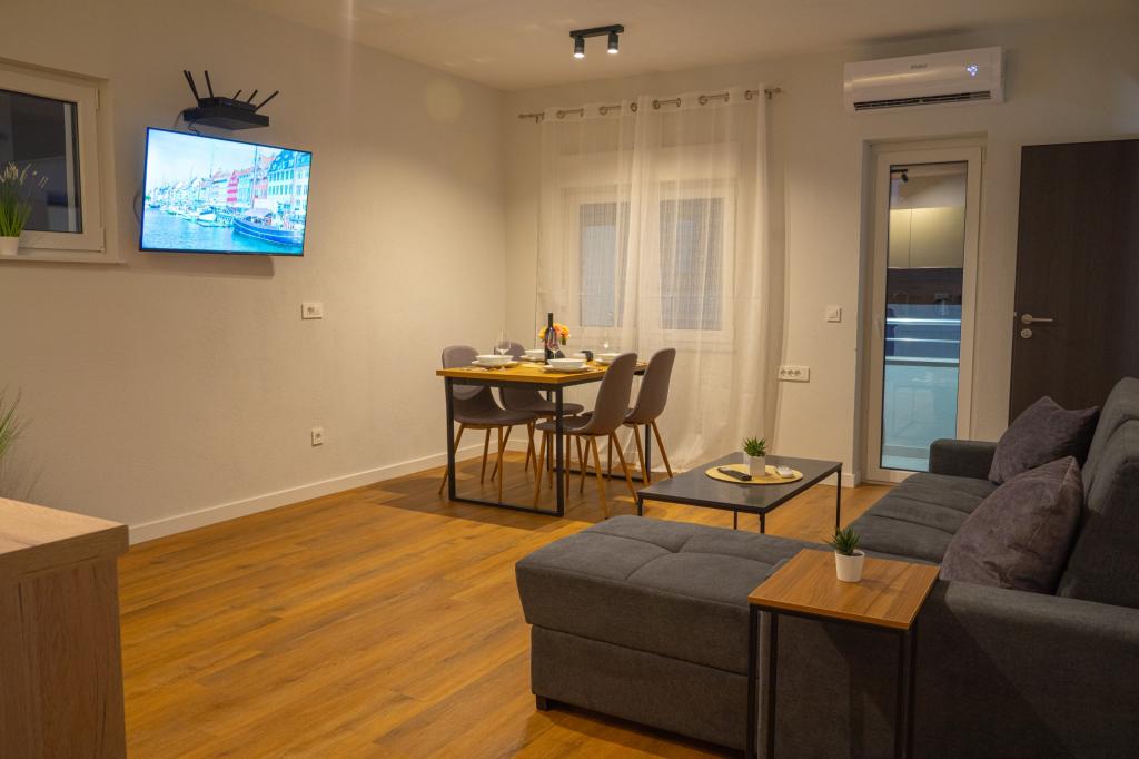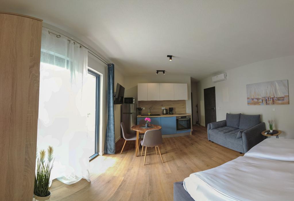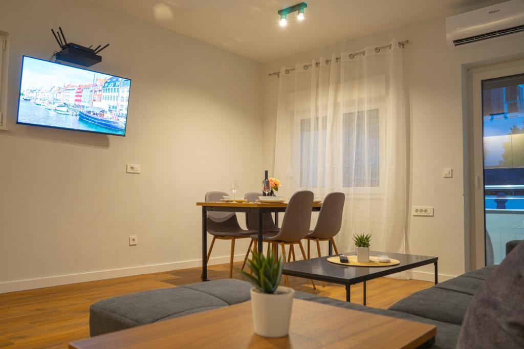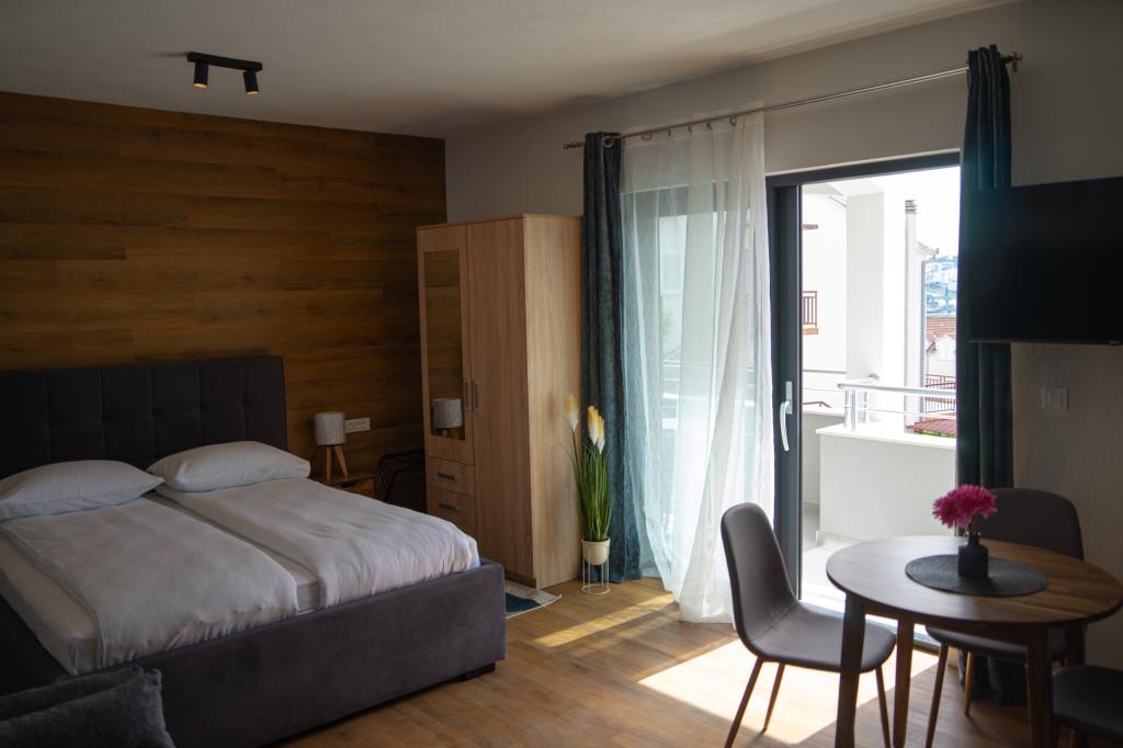 Witamy w apartamentach Neli, położonych na urokliwej wyspie Čiovo, połączonej z lądem dwoma mostami. Zaledwie 2,5 km od zabytkowego miasta Trogir. Nowo wyremontowany budynek, całkowicie odnowiony w 2023 roku. Luksusowe, nowoczesne, nowocześnie urządzone apartamenty. Pokoje są komfortowe i elegancko urządzone, a łóżka wyposażone są w nowe, ergonomiczne materace. Kuchnie są w pełni wyposażone w nowoczesne sprzęty AGD, zmywarkę i wszystko, czego potrzebujesz do przygotowania posiłków. W każdej łazience znajduje się pralka. Każdy apartament posiada balkon z widokiem na morze, idealny na relaks. Dodatkowo do dyspozycji Gości jest podgrzewany basen, leżaki, prysznic solarny, grill na świeżym powietrzu do przygotowywania niezapomnianych przysmaków oraz prywatny, monitorowany parking. Plaża, restauracje i sklepy znajdują się 200 metrów od apartamentu, 7 minut spacerem. Apartamenty Neli oferują wszystko, czego potrzebujesz na komfortowy wypoczynek i niezapomniane wspomnienia.