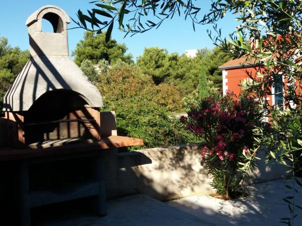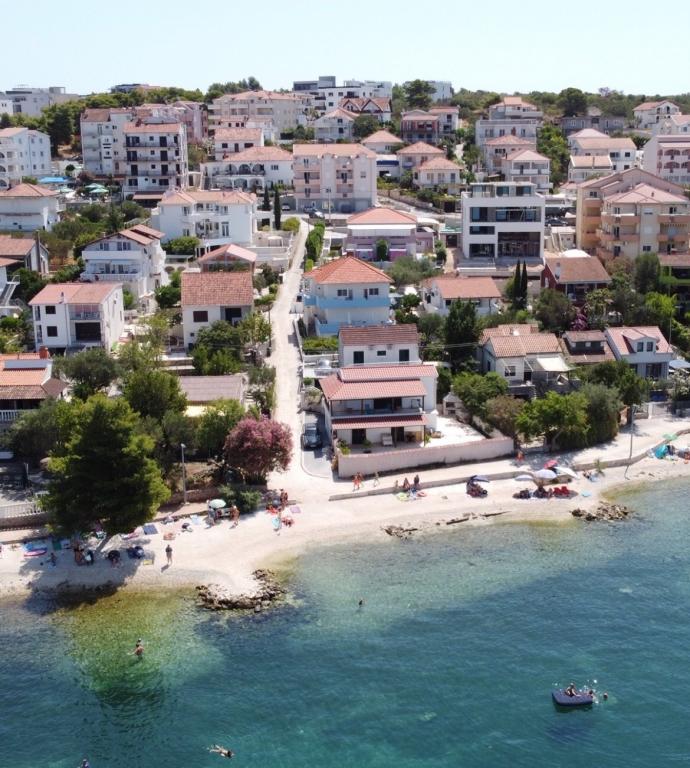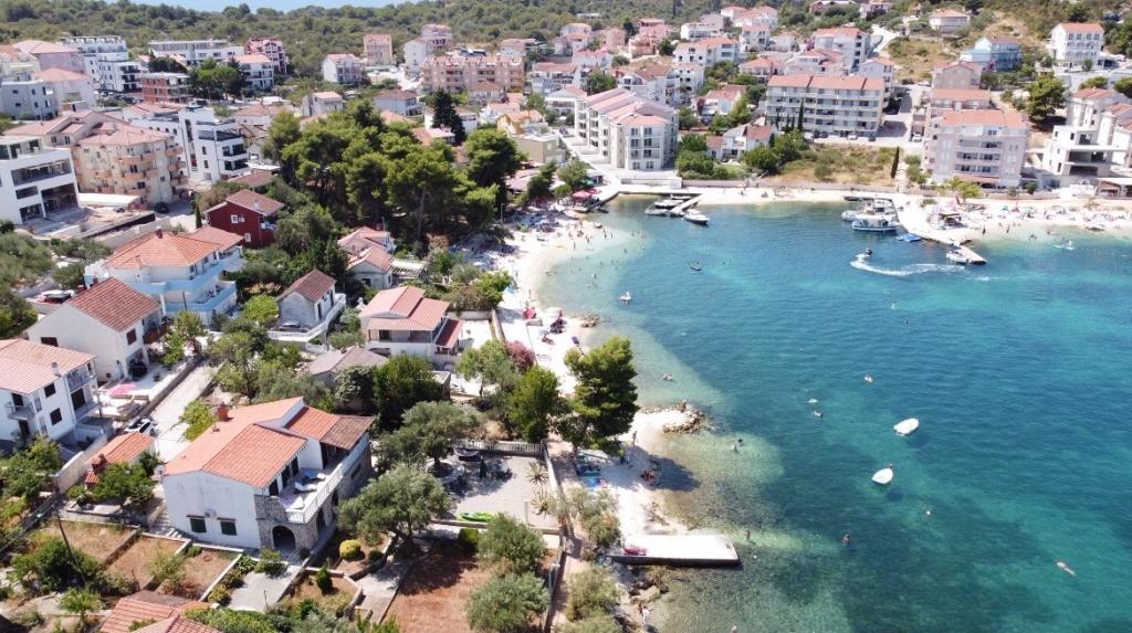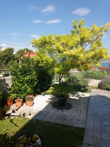 Nowoczesne apartamenty, zaledwie 40 metrów od morza i wszystkie letnie rozrywki i aktywnego wypoczynku. Mieszkanie jest idealne dla rodzin z dziećmi, ponieważ nie ma ruchu i duży trawiasty ogród jest rodzaj zabaw. Wokół domu znajduje się piękny ogród wzbogacony śródziemnomorskich ziół i kwiatów, i przyczynia się do przyjemnego pobytu. W gaju oliwnym, który znajduje się w podwórku, kominkiem, gdzie goście mogą przygotować potrawy z grilla. Obiekt położony jest w spokojnej części wyspy Brac, w miejscowości Trogir, w małej zatoce w nepoštednoj koło Trogiru i 5 km od lotniska w Splicie.