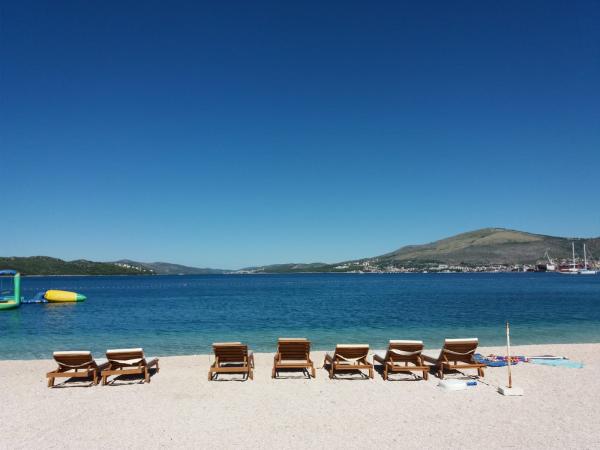 Opłata jest wliczone w cenę.Właściciele mogą zapewnić transport z lotniska, s do mieszkania za opłatą, i są zawsze dostępne dla gości na każdą potrzebę. Długi i ładny ośrodek plaża, oferuje wiele możliwości aktywnego wypoczynku, rozrywki, restauracji i innych atrakcji dla całej rodziny. Możesz wynająć wybór łodzi, skuterów, rowerów. Ponadto istnieje również park wodny dla dzieci, łodzi holowania spadochronu, a tam jest szeroki wybór zorganizowaną wycieczkę do wysp (piknik rybny), Kornati, w Medjugorje, wodospady Krka, Split, Dubrownik, Jeziora Plitwickie ... Etc. Między County i Trogir, z wyjątkiem drogi, można użyć stałej linii żeglugi morskiej i 10 minut nawigacji, przyjeżdżający w centrum Trogiru (pomnik miasta na UNESCO