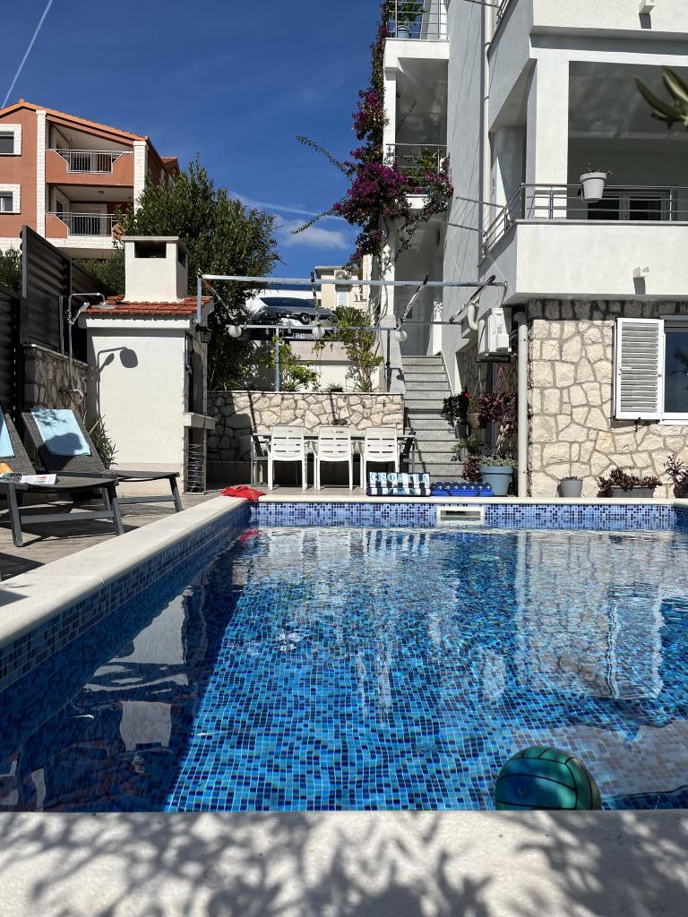 Mieszkaliśmy w apartamencie przez tydzień, dwoje dorosłych i trójka dzieci. Byliśmy zachwyceni! Świetny apartament, czysty i świeży. Balkon i widok były fantastyczne! Korzystaliśmy z basenu codziennie i byliśmy więcej niż zadowoleni. Kilka wieczorów grillowaliśmy też przy basenie, a dzieci uważały, że jest tam przytulniej niż w restauracji. Lokalizacja jest świetna! Jest kilka różnych możliwości pływania, zarówno na plaży, jak i na skałach. Nasz najmłodszy syn ma cztery lata i bez problemu mógł dojść do różnych miejsc. Było to trochę w „centrum” i w pobliżu był większy sklep spożywczy, ale nie było to uciążliwe bez rozsądnej wycieczki. Bez problemu dotarliśmy Uberem m.in. do Trogiru. Darko to wspaniały gospodarz, który służył wieloma wskazówkami i zawsze można było się z nim skontaktować. Bardzo troszczył się o nasze samopoczucie! Wrócimy.
