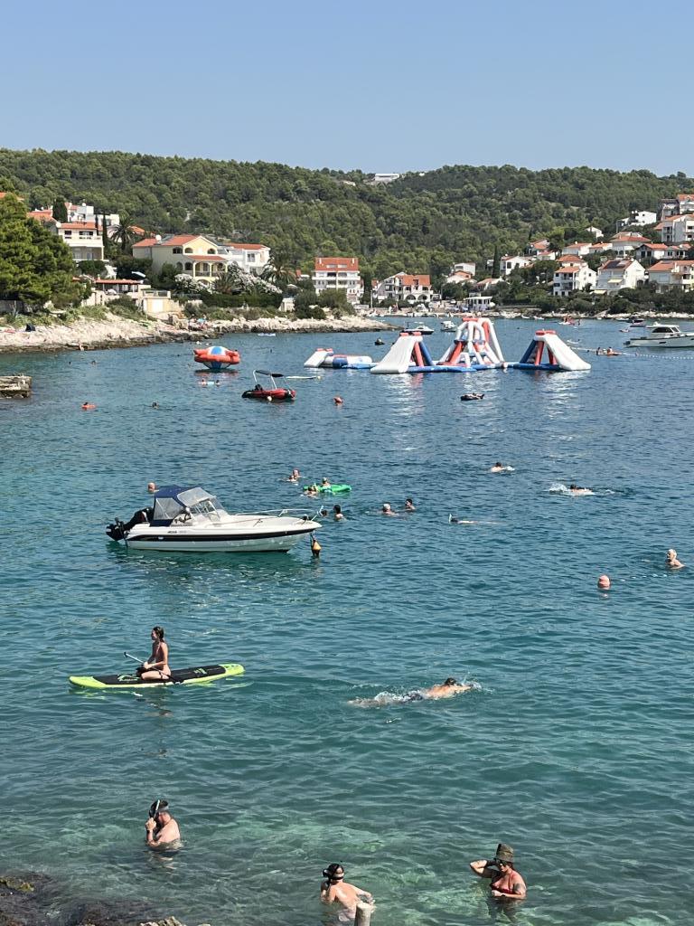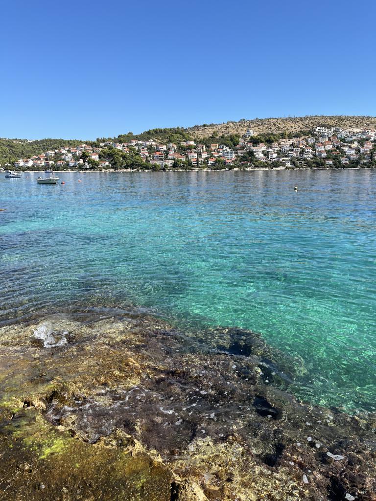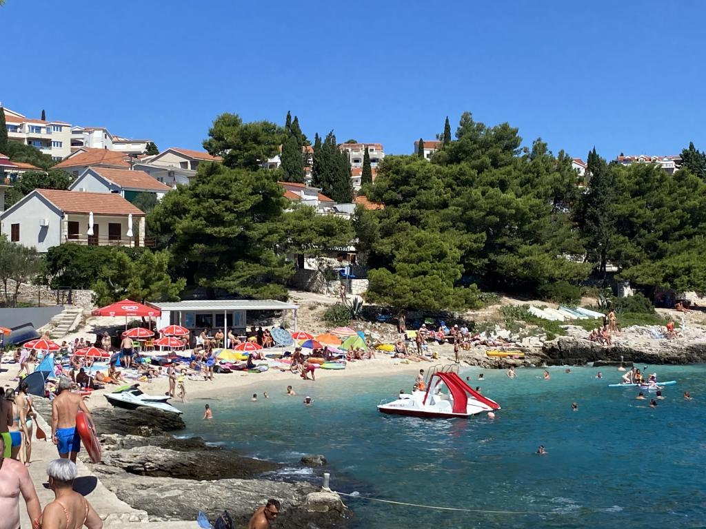 Poranne spacery wzdłuż morza tak błękitnego, że aż boli, śniadanie na balkonie z magicznym widokiem, nowoczesne, świeże światło z ładnym patio przy basenie, gdzie jedliśmy kilka kolacji. Kąpiele solne bezpośrednio pod domem z małych saun/skał. Ładna plaża żwirowa ok. 250 m od domu, idealny dla mniejszych dzieci, mały uroczy sklep spożywczy za rogiem. Żadnych leżaków paxa ani Eurodisco przy basenie, po prostu dobrze się bawić. Fantastyczny gospodarz, który pomaga we wszystkim z wielką cierpliwością, sąsiad ma firmę taksówkarską i zawiózł nas gdziekolwiek chcieliśmy, do/z lotów, wycieczek do Trogiru itp. Wysoce zalecane.