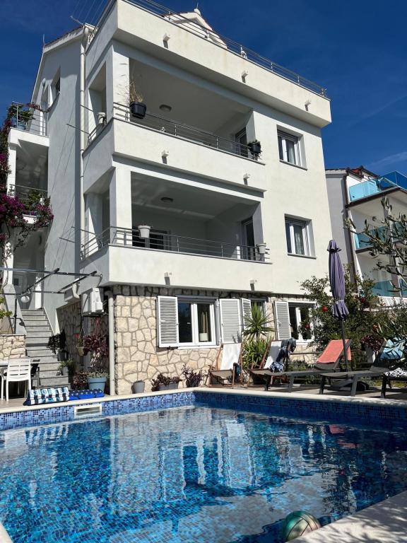 Cudowne miejsce! Cudowni gospodarze! Śliczny apartament bardzo dobrze wyposażony! Czysto, przestronnie z wyjątkowym tarasem z widokiem na morze!!! Basen z leżakami, miejsce do grillowania i do morza jakieś 70m! Wracamy na następne wakacje!