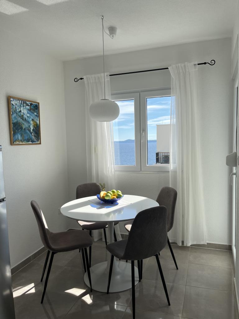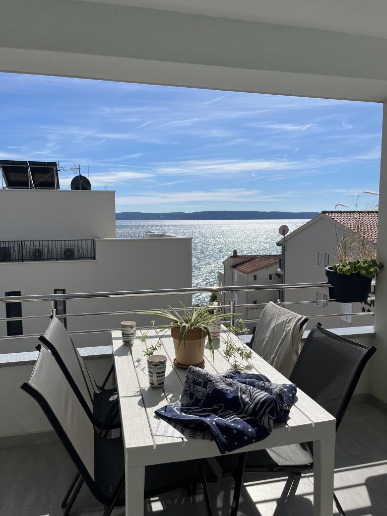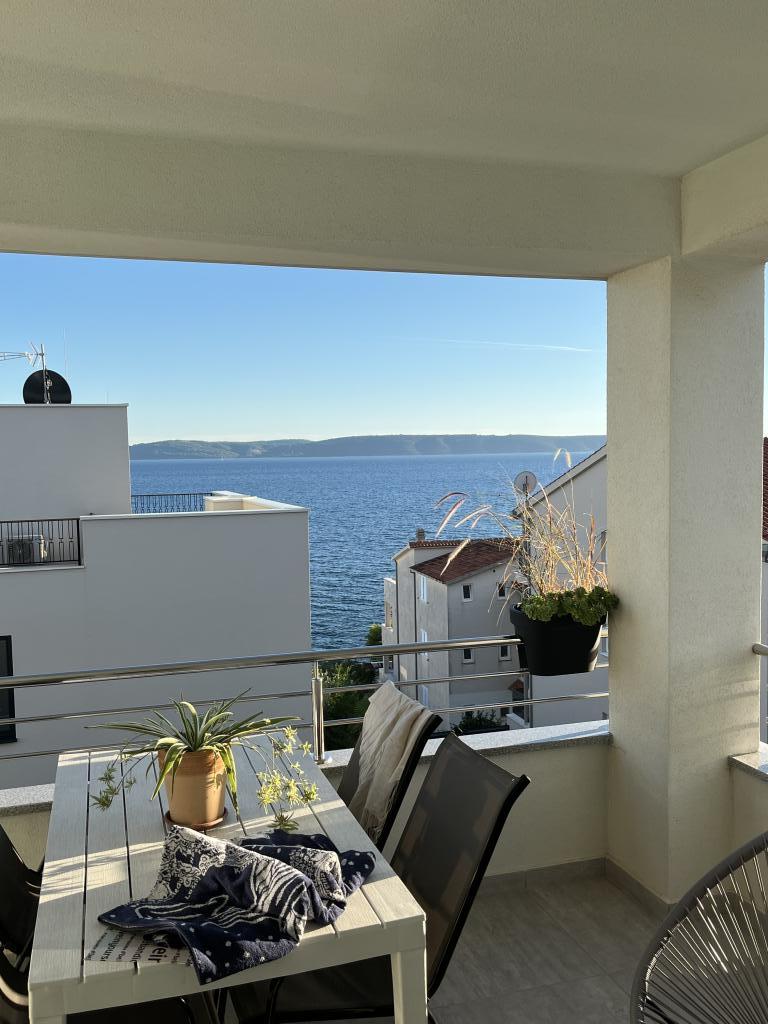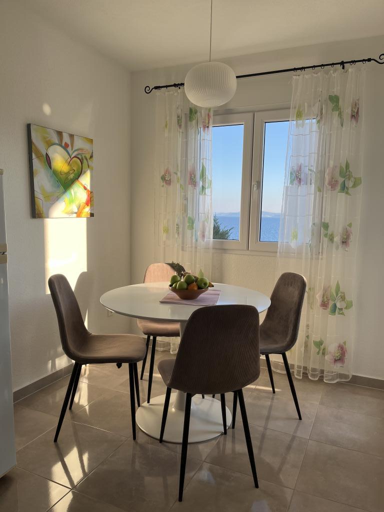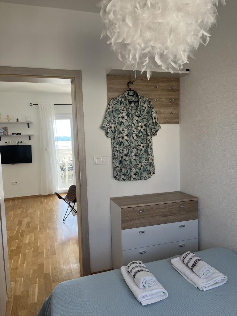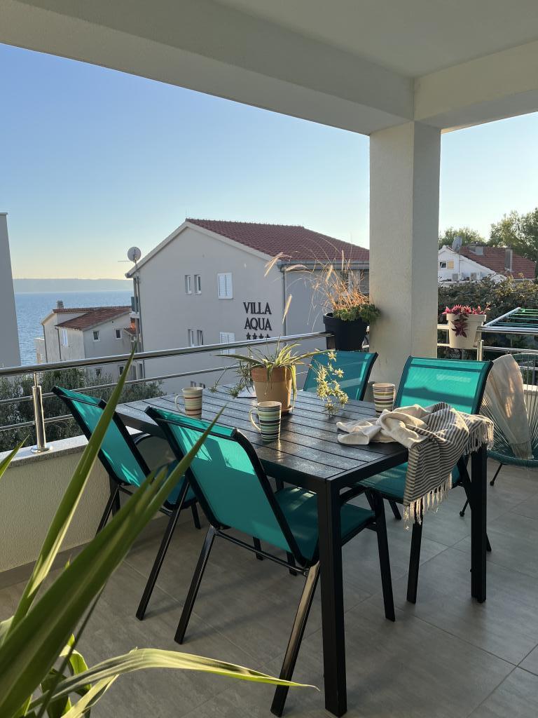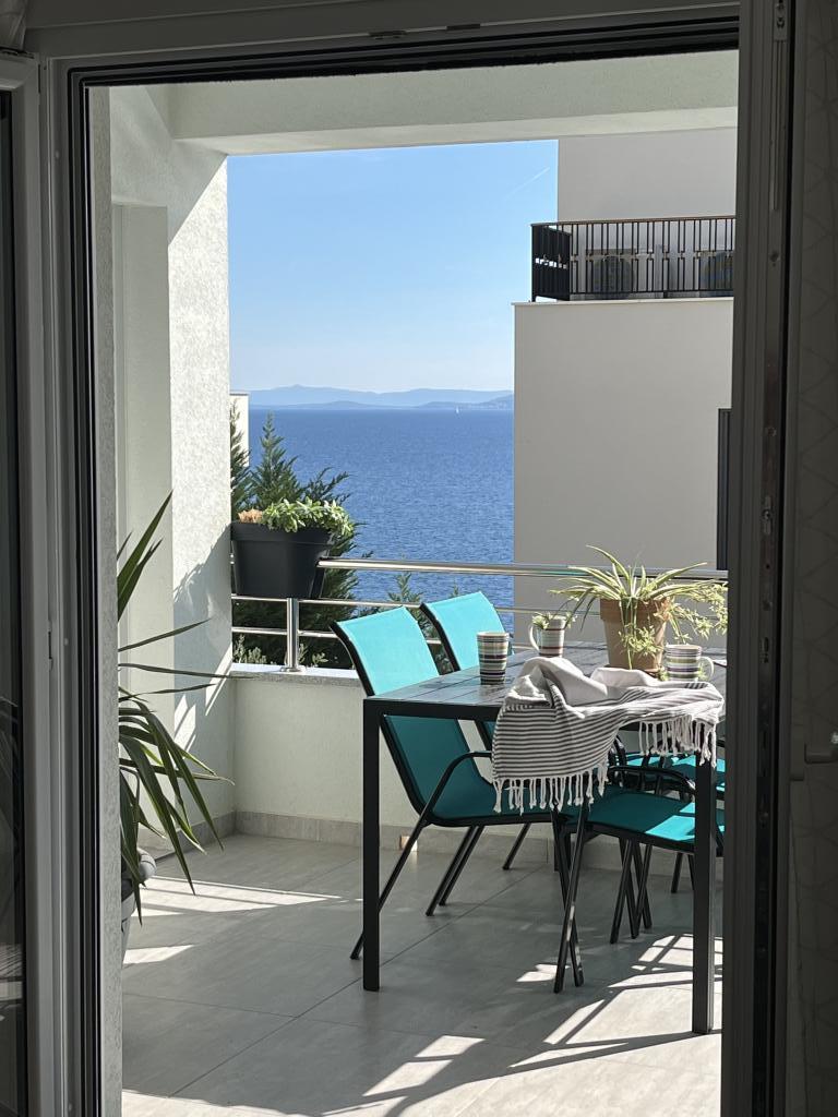 Obecnie przebywamy w apartamencie. Widok jest przecudowny. Na balkonie bez względu na porę dnia znajdziecie cień aby podelwktowqc się cudnym widokiem na morze. Każde zdjęcie przedstawia rzeczywisty wygląd apartamentu. To najlepszy apartament w jakim dotąd byliśmy na Chorwacji. Gorąco polecam. Jesteśmy z pieskiem i dwójka dzieci i jest cudownie