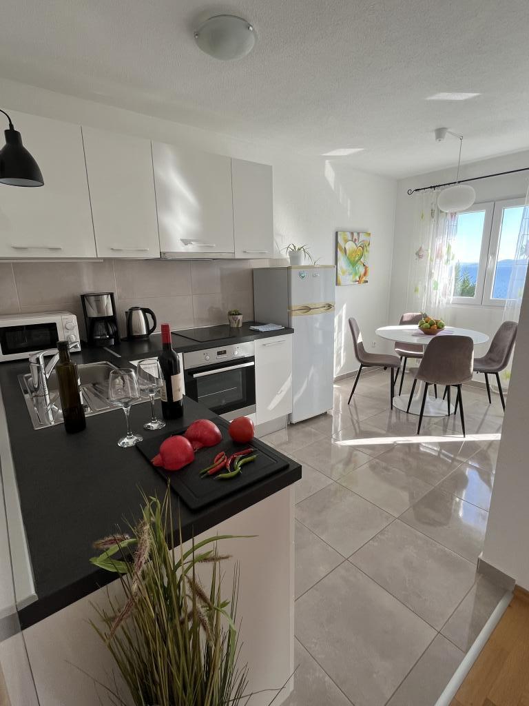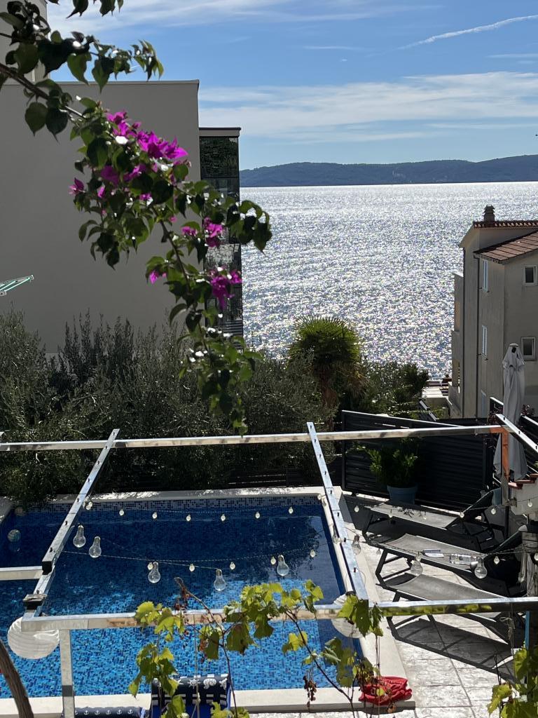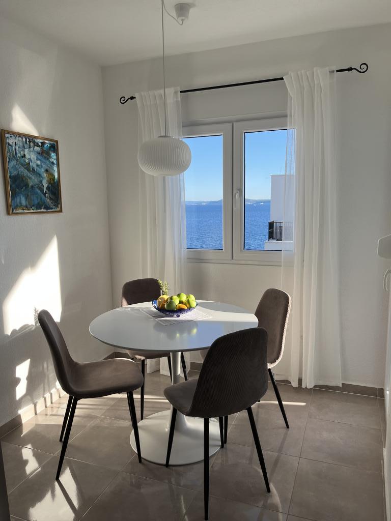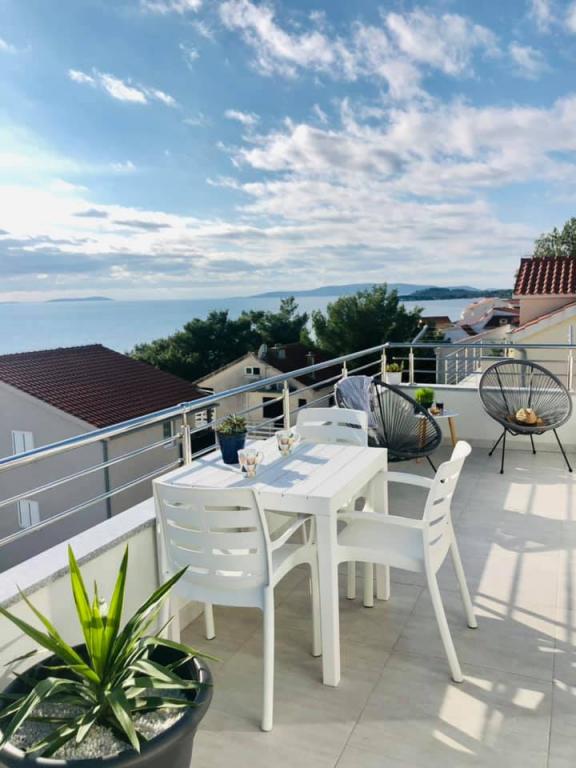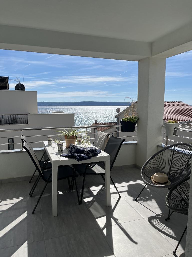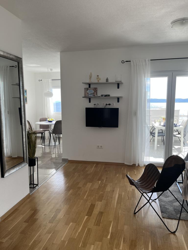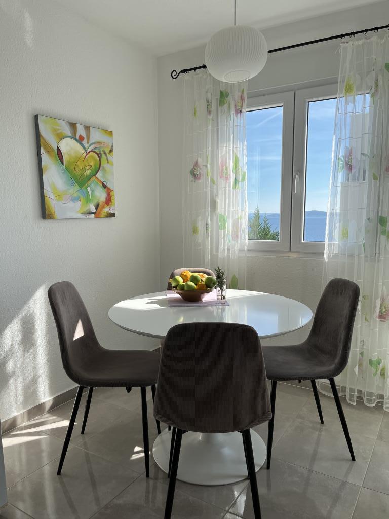 Obecnie przebywamy w apartamencie. Widok jest przecudowny. Na balkonie bez względu na porę dnia znajdziecie cień aby podelwktowqc się cudnym widokiem na morze. Każde zdjęcie przedstawia rzeczywisty wygląd apartamentu. To najlepszy apartament w jakim dotąd byliśmy na Chorwacji. Gorąco polecam. Jesteśmy z pieskiem i dwójka dzieci i jest cudownie
