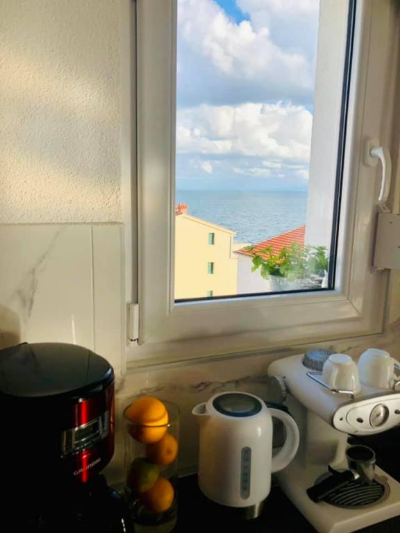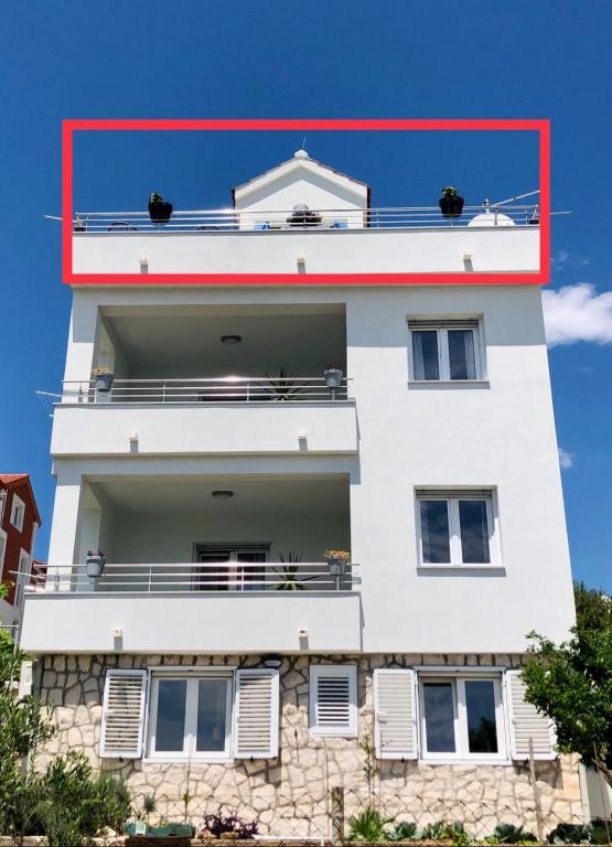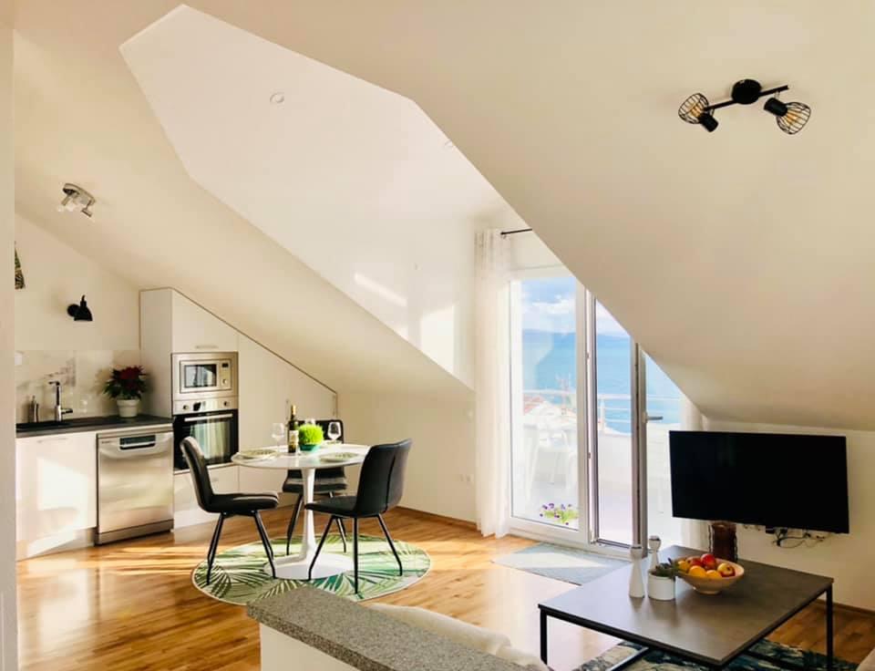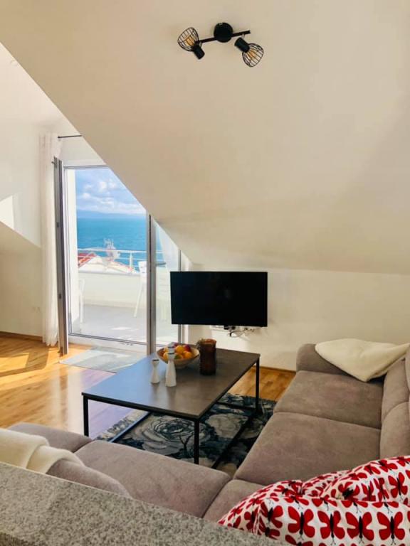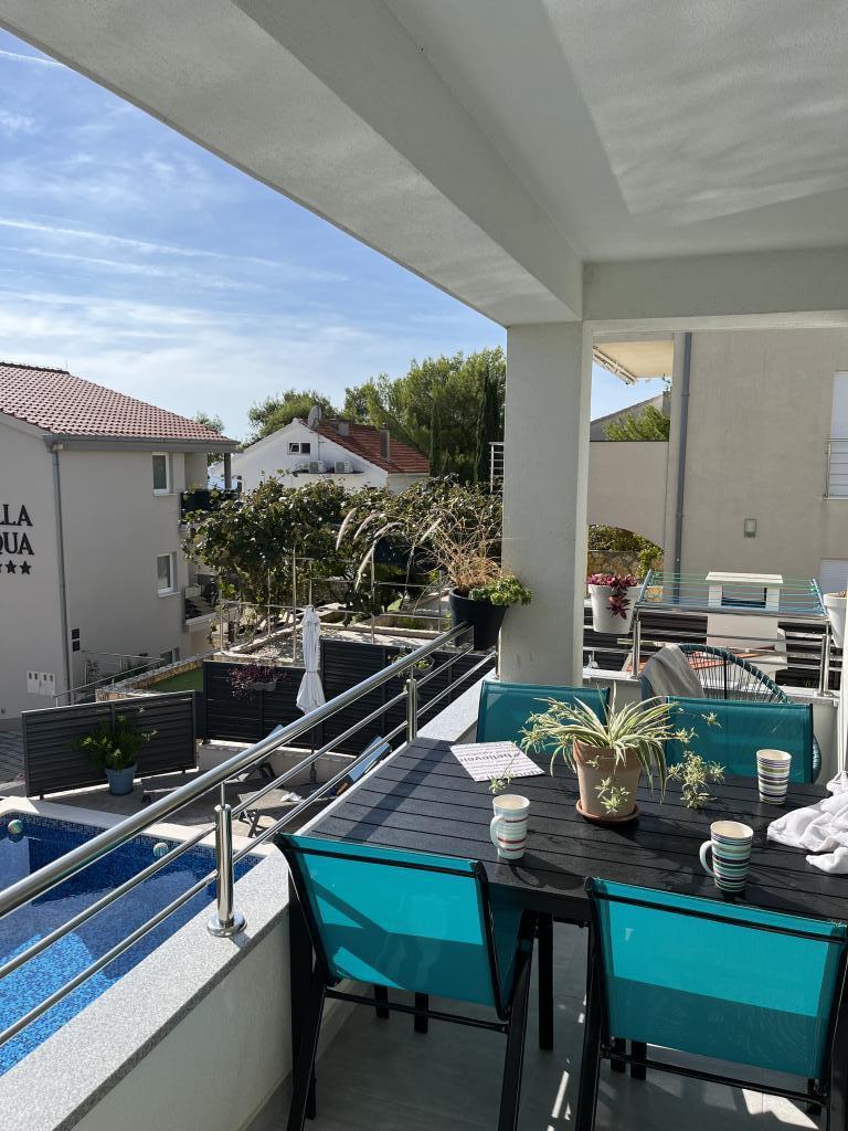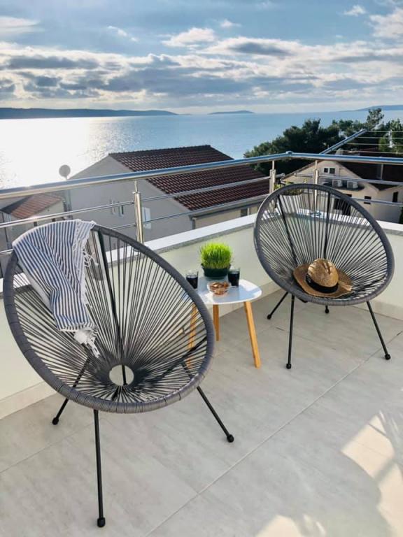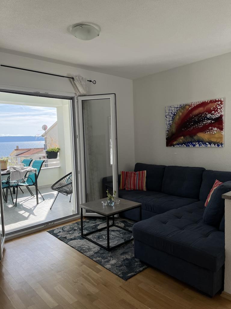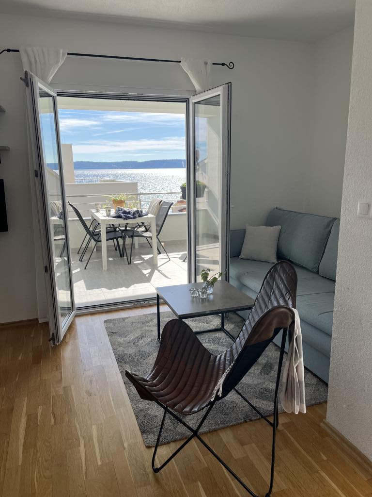 Obecnie przebywamy w apartamencie. Widok jest przecudowny. Na balkonie bez względu na porę dnia znajdziecie cień aby podelwktowqc się cudnym widokiem na morze. Każde zdjęcie przedstawia rzeczywisty wygląd apartamentu. To najlepszy apartament w jakim dotąd byliśmy na Chorwacji. Gorąco polecam. Jesteśmy z pieskiem i dwójka dzieci i jest cudownie