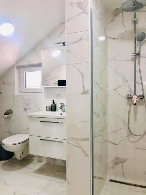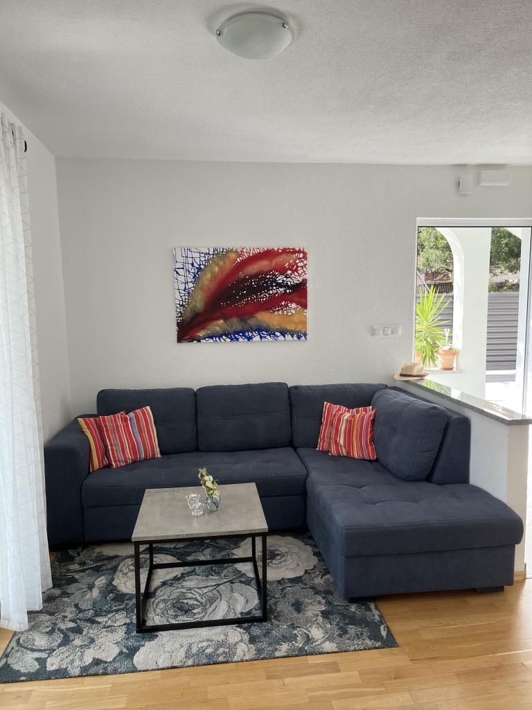 Wynajęliśmy mieszkanie na najwyższym piętrze i nie mogliśmy być bardziej szczęśliwi. Przestrzeń jest czysta i jest wszystko, czego potrzebujesz. Widok z tarasu jest niesamowity!!! Znajduje się tam stół jadalny i salon. Bardzo wygodne łóżko, zmywarka, ładny, duży prysznic i pralka sprawią, że wakacje będą łatwe. Basen sprawia, że jest bardzo przyjemnie, i w tym ogrodzie też są prysznic, aby móc wziąć prysznic przed wejściem do basenu. 60 metrów od domu morze na Ciebie czeka, cudne!!! W pobliżu znajduje się minimarket oraz kilka kawiarni i przyjemnych restauracji. Zrób sobie przysługę i wynajmij to naprawdę miłe miejsce na bardzo, bardzo dobre wakacje. Darko i Niclas są najlepszymi gospodarzami, jakich możesz sobie życzyć. Są uprzejmi, przyjaźni i zawsze chętni, aby dać ci dobre wskazówki na temat tego, co robić, a czego nie robić, gdy jesteś w Chorwacji.