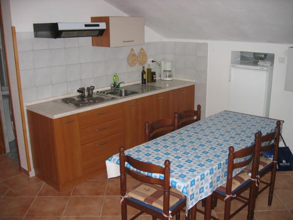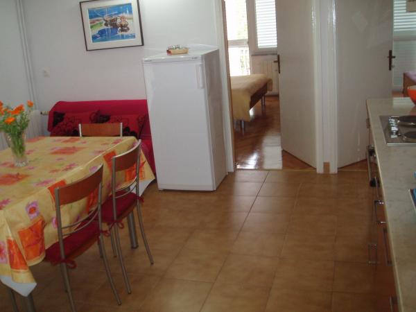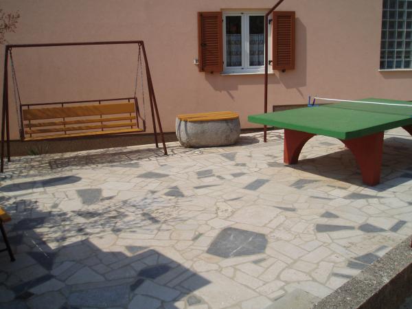 Dom rodzinny w spokojnej i atrakcyjnej lokalizacji z 5 apartamentami: 3 AP z jednym pokojem dla dwóch osób, parter, pierwsze piętro i drugie piętro, 1 AP z dwoma pokojami dla 4 osób na drugim piętrze, widok na morze, 1 AP z trzema pokojami dla 5 lub 5 +1 osób, parter, otoczony ogrodem i tarasem, niedaleko centrum miasta (5-7 min) i plaży (3-4 min), z prywatnym parkingiem i garażem na rowery. Apartamenty są przestronne (40 m2 - 80 m2), w pełni i nowocześnie wyposażone, posiadają klimatyzację, internet, balkony i taras. Apartamenty na 2. piętrze mają widok na morze. Apartamenty na antresoli znajdują się w ogrodzie z dużą ilością zieleni i kwiatów. Na podwórku znajduje się stół do ping-ponga, huśtawka, grill, kamienne pomniki. W pobliżu znajdują się restauracje i targ. Długa i słoneczna plaża jest piaszczysta i kamienista. Wzdłuż plaży rosną sosny i drzewa oliwne. W pobliżu znajdują się korty tenisowe, ścieżki rowerowe, żeglarstwo, nurkowanie, narty wodne, wycieczki. Wypożyczalnia łodzi. Rodzina Orbanić życzy miłego pobytu na Cresie.