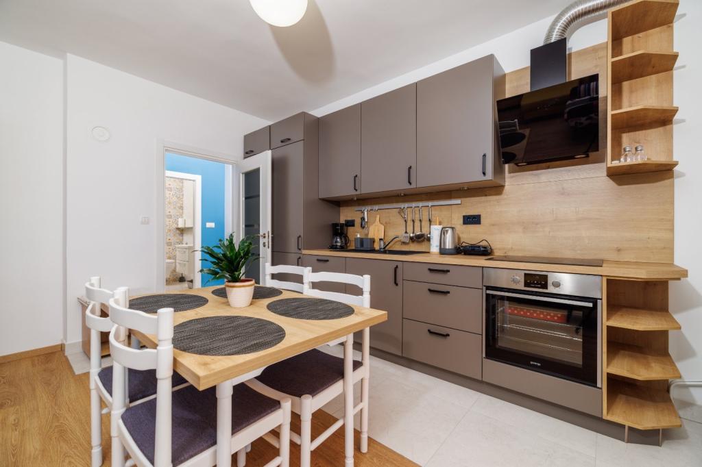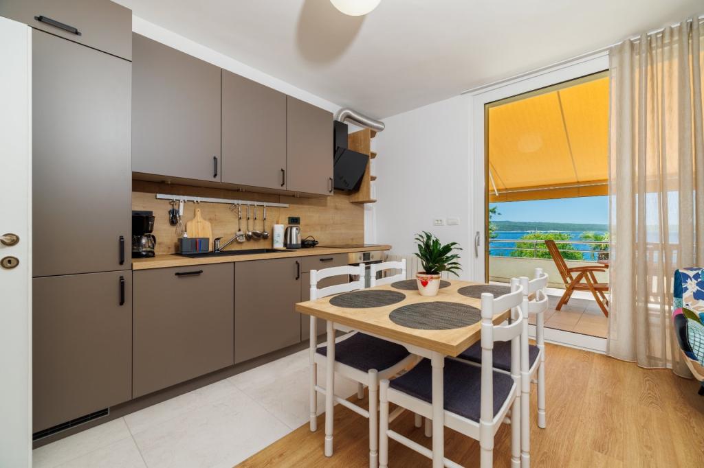 Piękny, nowo wyremontowany apartament w pierwszym rzędzie od morza, w słynnej dzielnicy Crikvenicy zwanej Crni Mol. Apartament składa się z oddzielnej sypialni z łóżkiem podwójnym, salonu z w pełni wyposażoną kuchnią i łóżkiem pojedynczym, łazienki z prysznicem i pralką oraz dużego, przestronnego tarasu z pięknym widokiem na morze. W promieniu 200 m znajdują się supermarket, piekarnia, restauracje i kawiarnie.