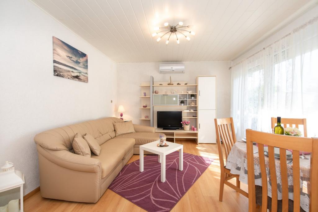 Nowo wyremontowane mieszkanie na parterze rodzinnego domu z przestronnym podwórkiem i prywatnym parkingiem. Odległość do plaży to 3 minuty spacerem, a także do centrum Crikvenicy, gdzie latem odbywają się wszystkie imprezy. Mieszkanie jest wyposażone w klimatyzację, wszystkie niezbędne sprzęty AGD, wi-fi, satelitę, a na podwórku znajduje się grill. Podwórko jest ogrodzone i duże z dużą ilością cienia, co byłoby szczególnie odpowiednie dla zwierząt domowych, które z pewnością są mile widziane.