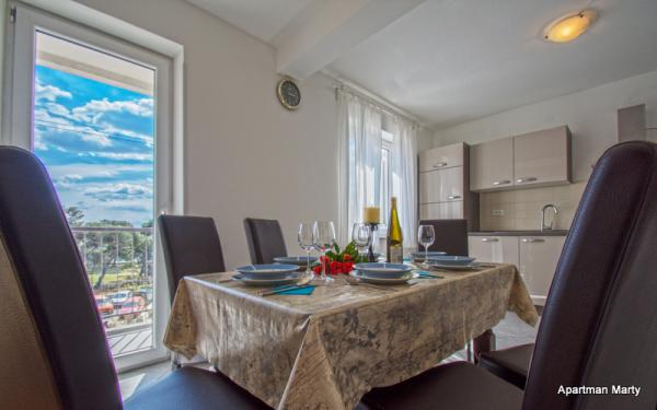 Apartament Marty znajduje się w centrum miasta Crikvenica! Mieszkanie jest 76m2 i znajduje się w budynku mieszkalnym, na 2 piętrze, oraz w mieszkaniach mniejszych niż 50 m znajdują się poczta, bank, sklepy, przystanek autobusowy, plaża. Jest to bardzo ładne i wygodne, a składa się w pełni wyposażona kuchnia, jadalnia, łazienka z WC, WC, pokój dzienny, dwie sypialnie i balkon. Parking jest publiczna.