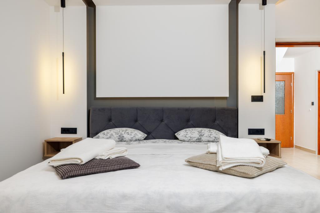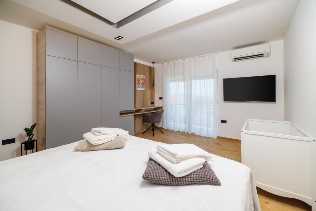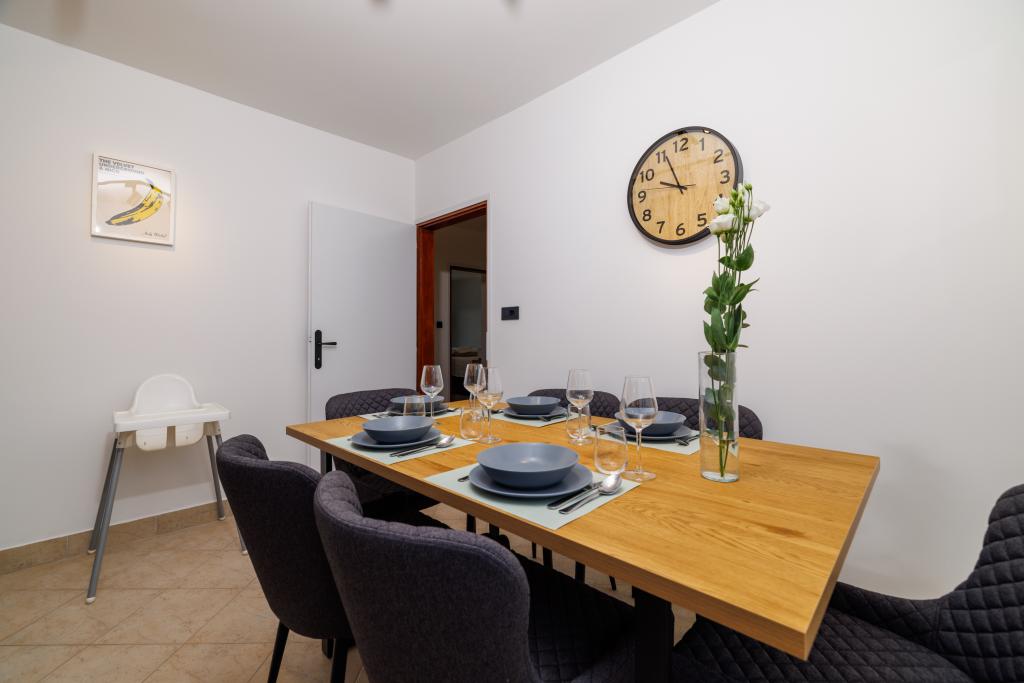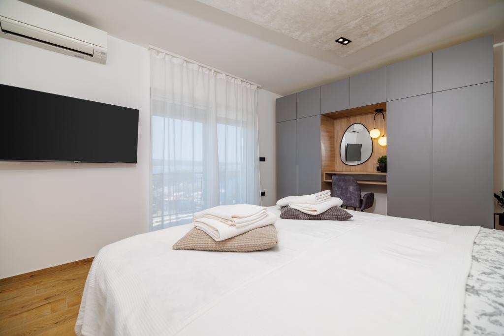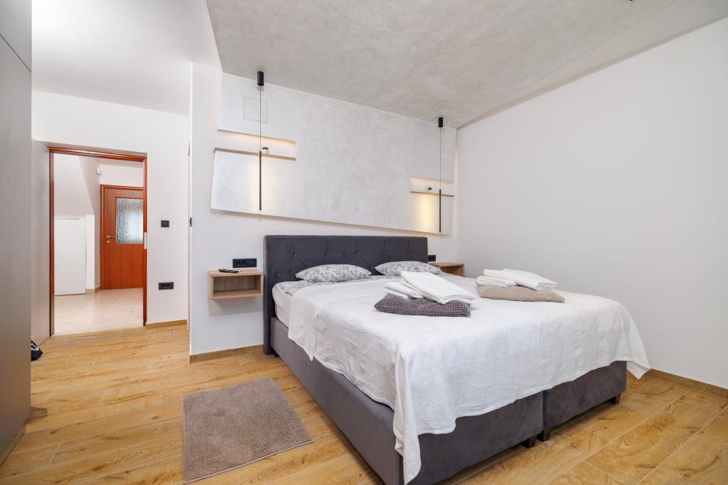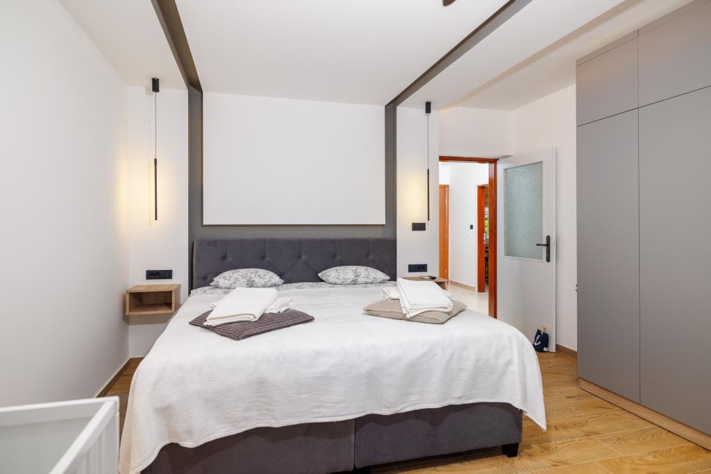 Nowo urządzony App Mladen, całkowicie odnowiony w nowoczesnym stylu, położony jest w spokojnej części miasta, zaledwie 5 minut spacerem od centrum i 2 minuty spacerem od plaży. Mieszkanie nadaje się na przyjemne i spokojne wakacje. Najbliższa plaża znajduje się zaledwie 50 m od apartamentu. Bliskość centrum (300 m), bezpłatny parking, internet (wi-fi) oraz klimatyzacja to kolejne atuty jakie oferujemy naszym gościom. Mieszkanie wyposażone jest w nowoczesne meble oraz wszelki sprzęt AGD. Pokój dzienny (rozkładana kanapa dwuosobowa, płytki, kącik zabaw dla dzieci). Kuchnia (płyta elektryczna, piekarnik, lodówka z zamrażarką, ekspres do kawy, kuchenka mikrofalowa, zmywarka, czajnik elektryczny, ręczniki kuchenne). Sypialnie: (2 pokoje dwuosobowe z łóżkiem małżeńskim w każdym pokoju). Łazienki (łazienka z WC, prysznicem i umywalką oraz łazienka z WC, wanną, umywalką i pralką). Balkon/Taras (własny balkon, częściowo zadaszony, z widokiem na morze, miejsce do siedzenia, wielkość balkonu: 12m