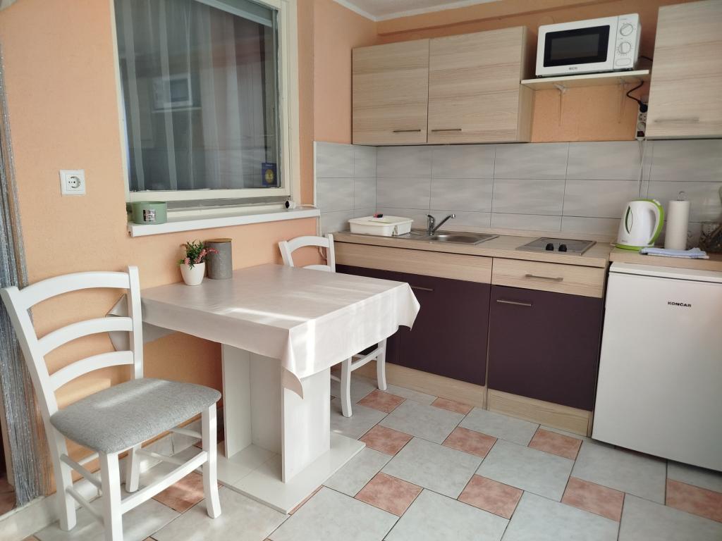 W pełni umeblowany apartament z osobnym wejściem na parterze domu rodzinnego. Do plaży, gdzie znajduje się najbliższa restauracja, można dojść w 7 minut centrum Crikvenicy. Miejsce parkingowe na podwórzu przed domem.