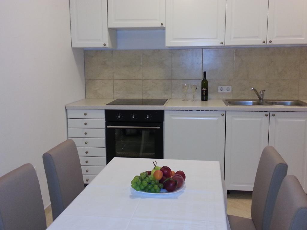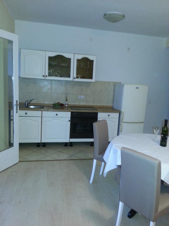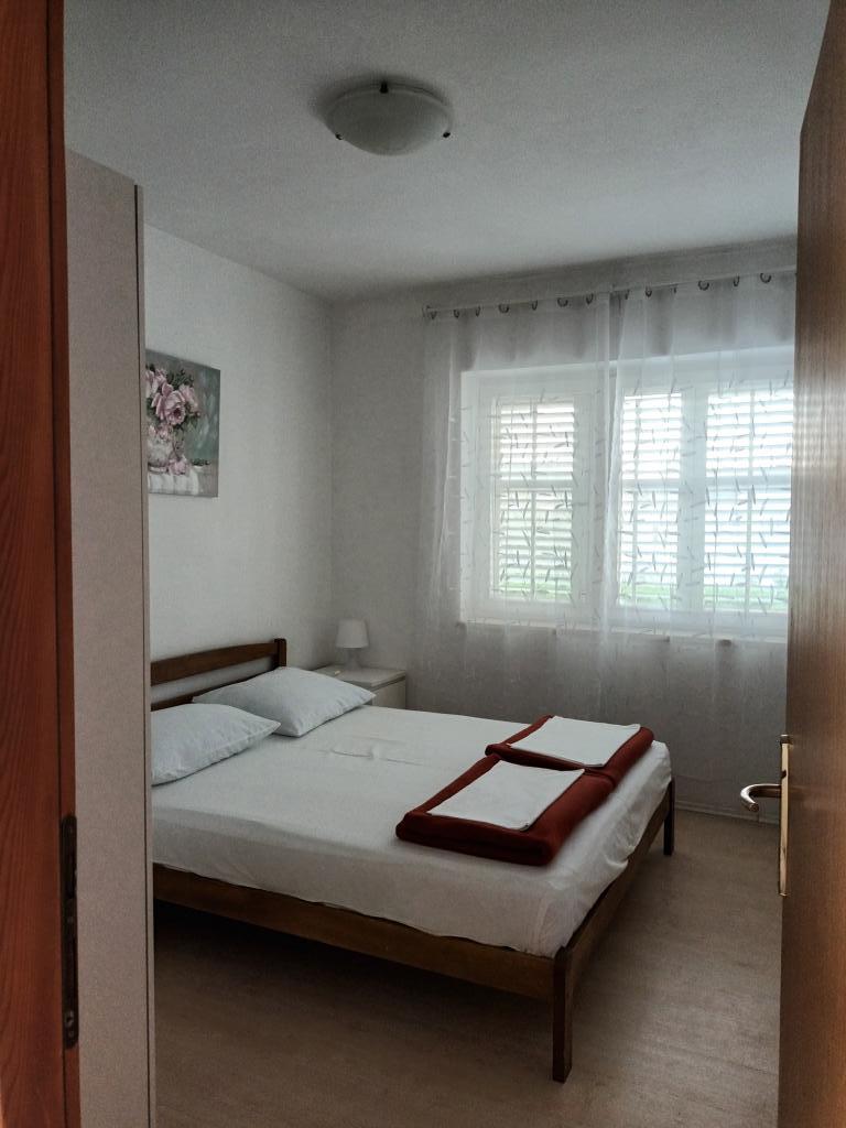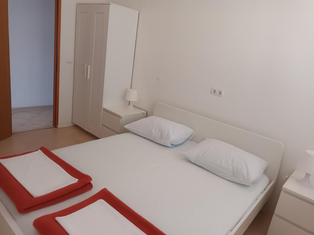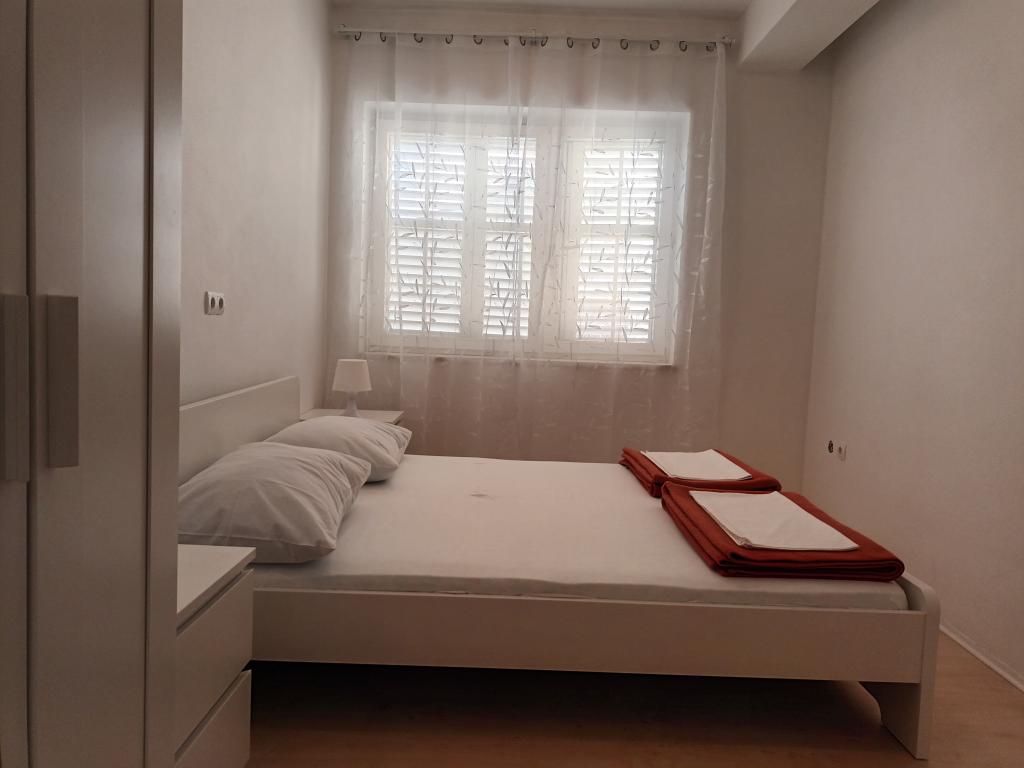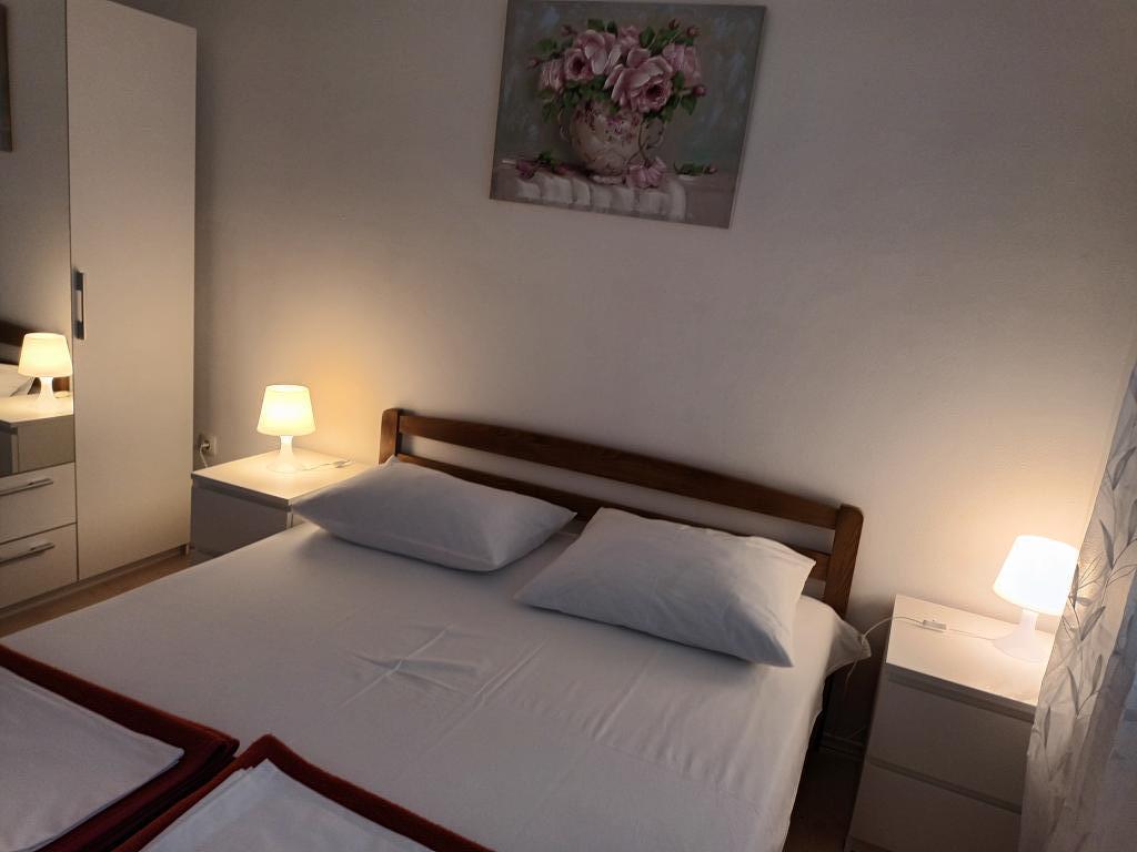 Dwa w pełni wyposażone apartamenty na pierwszym piętrze domu rodzinnego z pięknym widokiem na morze. Jeden (lewy) apartament składa się z dwóch sypialni, dwóch łazienek (każdy pokój ma własną łazienkę), kuchni z salonem i tarasu. Drugi (prawy) apartament składa się z korytarza, sypialni i dużego salonu z kuchnią, a także dwóch łazienek i tarasu. Apartamenty mają własne miejsce parkingowe. Odległość do głównego placu w centrum miasta wynosi 5 minut pieszo, a do plaży w centrum miasta około 7 minut pieszo. Najbliższa plaża w centrum miasta jest kamienista, ozdobiona, zawiera plac zabaw dla dzieci, restauracje i bary i jest odpowiednia dla rodzin z dziećmi. Następnie znajduje się ozdobiona piaszczysta plaża. Każdy apartament ma własne miejsce parkingowe. Goście mają bezpłatne wi-fi na terenie całego obiektu.