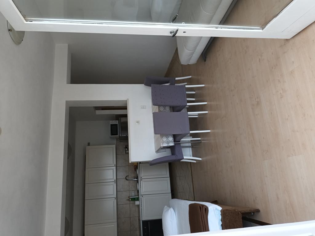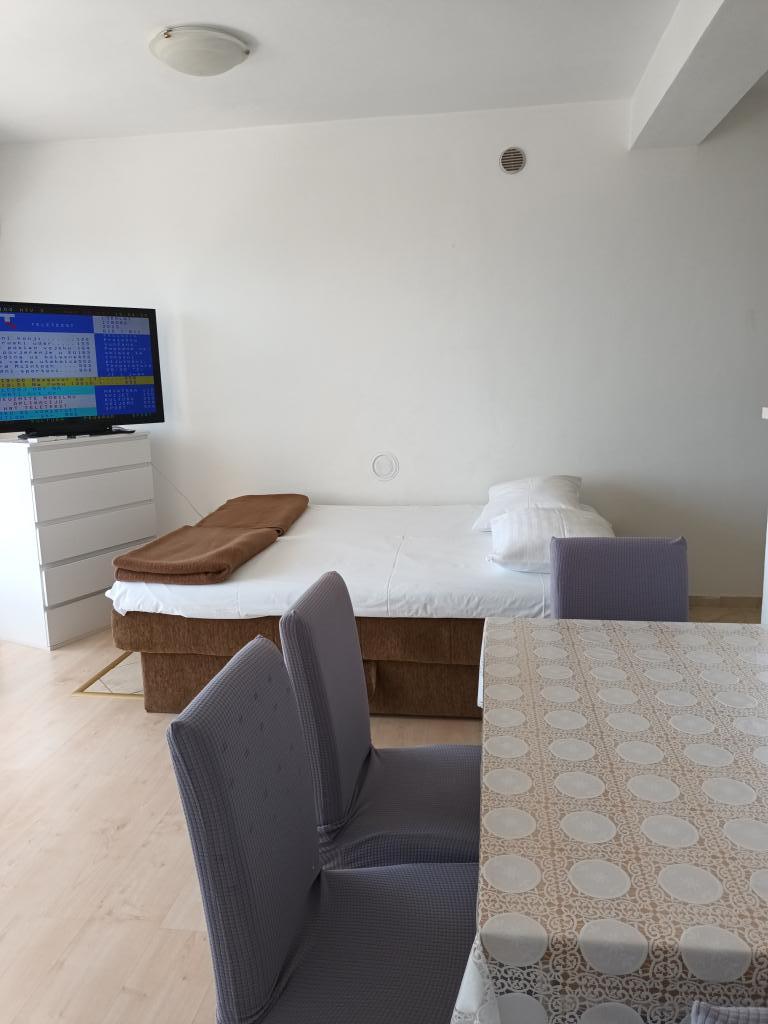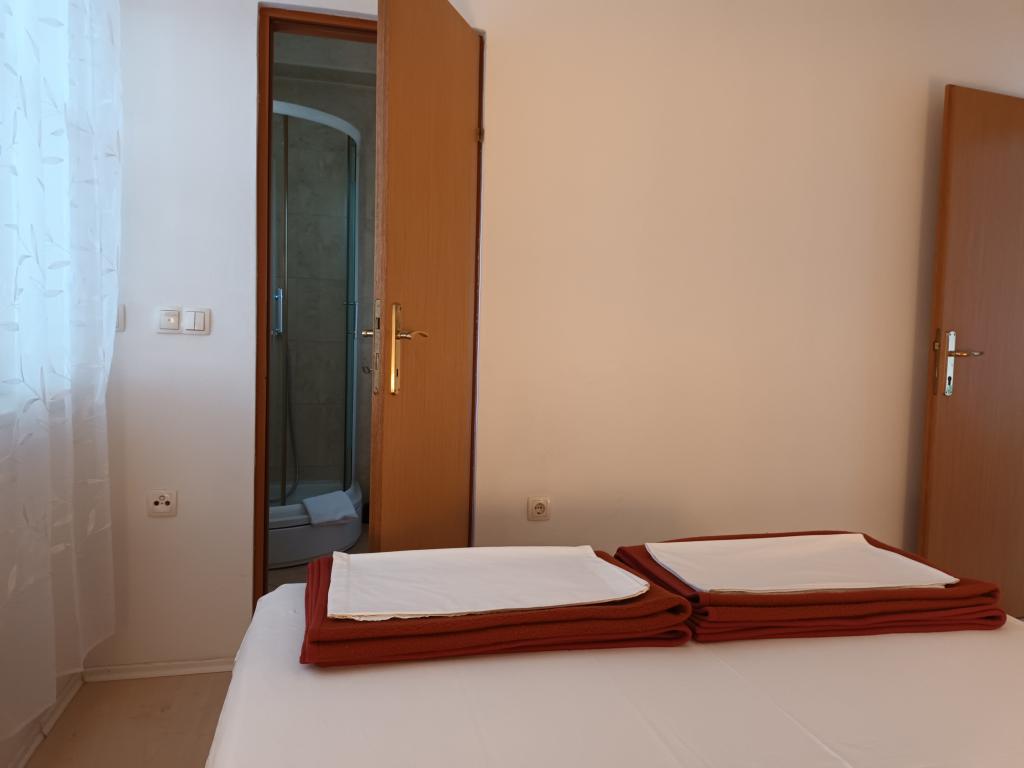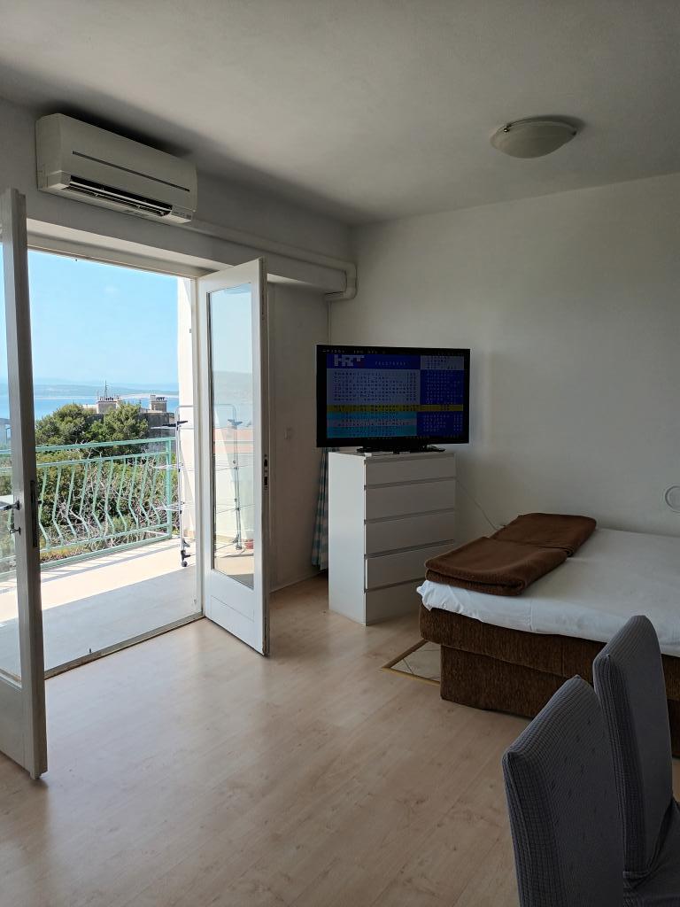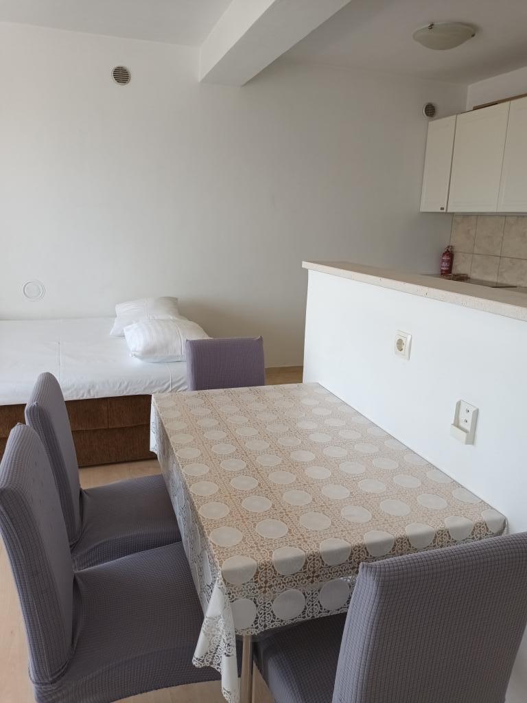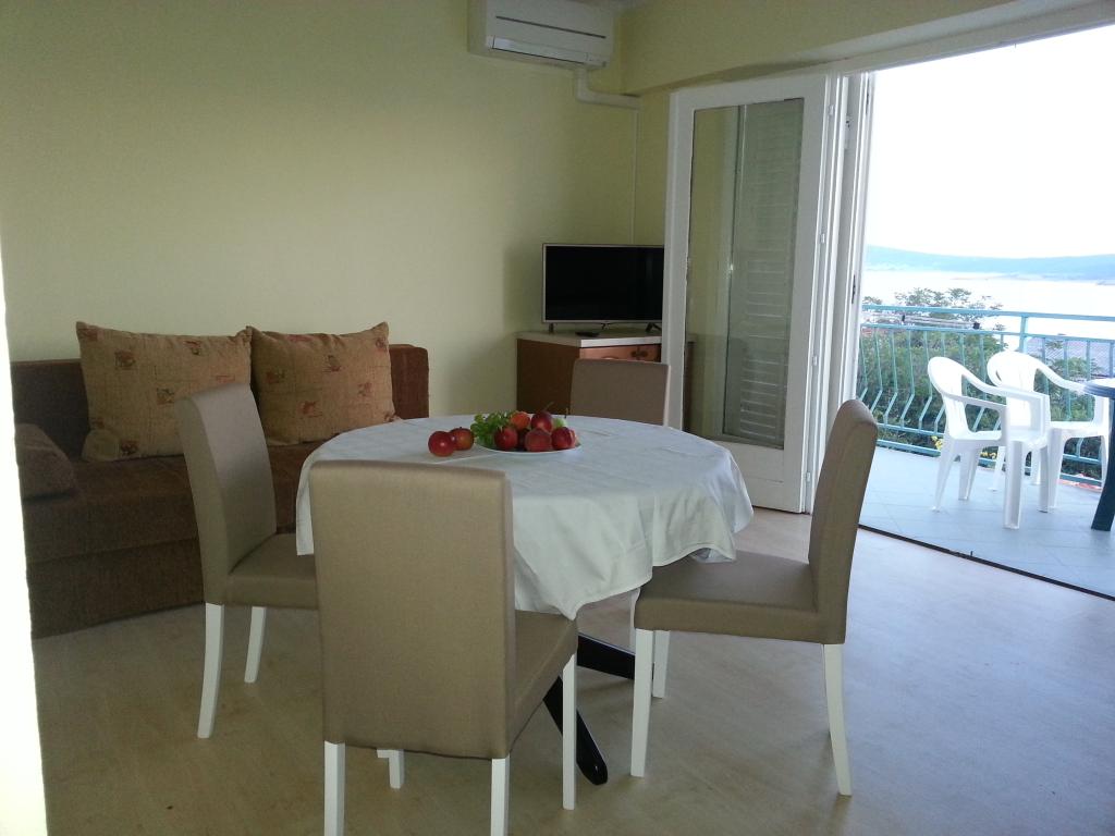Dwa w pełni wyposażone apartamenty na pierwszym piętrze domu rodzinnego z pięknym widokiem na morze. Jeden (lewy) apartament składa się z dwóch sypialni, dwóch łazienek (każdy pokój ma własną łazienkę), kuchni z salonem i tarasu. Drugi (prawy) apartament składa się z korytarza, sypialni i dużego salonu z kuchnią, a także dwóch łazienek i tarasu. Apartamenty mają własne miejsce parkingowe. Odległość do głównego placu w centrum miasta wynosi 5 minut pieszo, a do plaży w centrum miasta około 7 minut pieszo. Najbliższa plaża w centrum miasta jest kamienista, ozdobiona, zawiera plac zabaw dla dzieci, restauracje i bary i jest odpowiednia dla rodzin z dziećmi. Następnie znajduje się ozdobiona piaszczysta plaża. Każdy apartament ma własne miejsce parkingowe. Goście mają bezpłatne wi-fi na terenie całego obiektu.