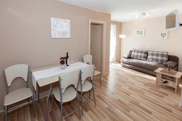 Wielkie uznanie dla Apartamentu Benic i dla naszej gospodyni bardzo miłej i sympatycznej Gościnność na wysokim poziomie. Mieszkanie jest czyste, schludne i zadbane w każdym szczególe, położone zaledwie kilka minut od plaży z parkingiem przed domem, które również jest zadbane i zadbane z pięknym widokiem na morze. Plaża jest pełna udogodnień dla dzieci i dorosłych, zawiera plac zabaw, trampolinę, huśtawki, kawiarnię, toaletę i prysznic ... Wszystkie niezbędne udogodnienia są w pobliżu w ciągu zaledwie 10 minut Konzum, Plodine, DM, Bipa, Banki, różne restauracje i cukiernie itp. ..Mały sklep samoobsługowy minutę od apartamentu. Już drugi rok spędzamy 2 tygodnie wakacji w tym samym apartamencie i każdemu polecam nocleg, na pewno wrócimy w przyszłym roku.