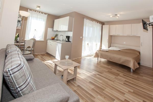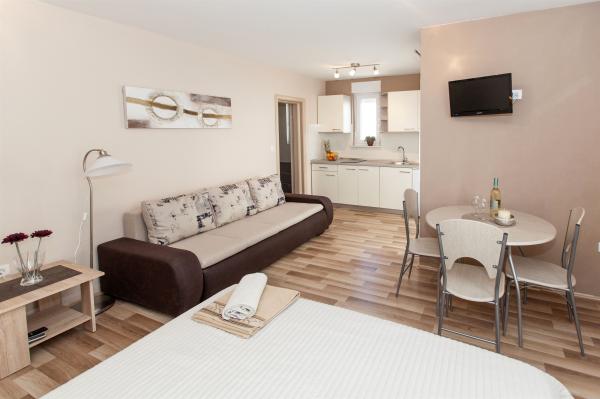 Opłata jest wliczone w cenę.Spędziliśmy w apartamencie 4 noce. Dwoje dorosłych i jedno dziecko. Właścicielom należą się wielkie brawa za czystość i serdeczność. W apartamencie jest wszystko, czego potrzeba. Plaża jest bardzo blisko. W pobliżu znajduje się również targ. Do centrum miasta można dojść przyjemnym spacerem wzdłuż wybrzeża w 10 minut. Można również wybrać się na spacer wzdłuż wybrzeża (około 2,5 km) do Selce, gdzie znajduje się przepiękna piaszczysta plaża. Na pewno wrócimy.