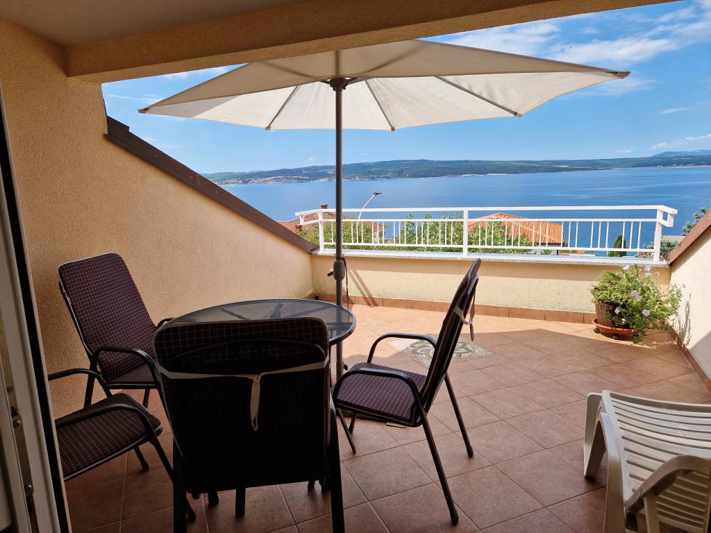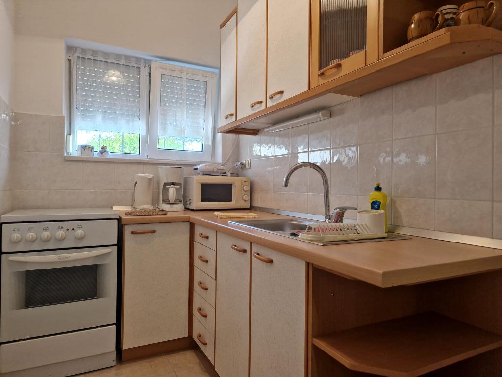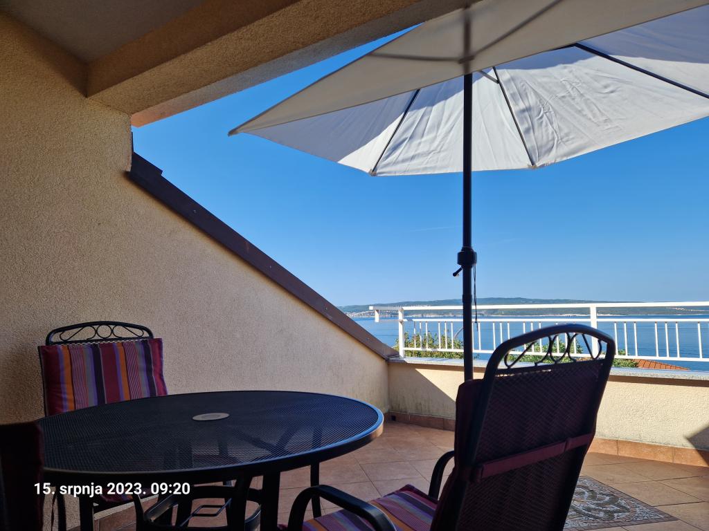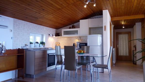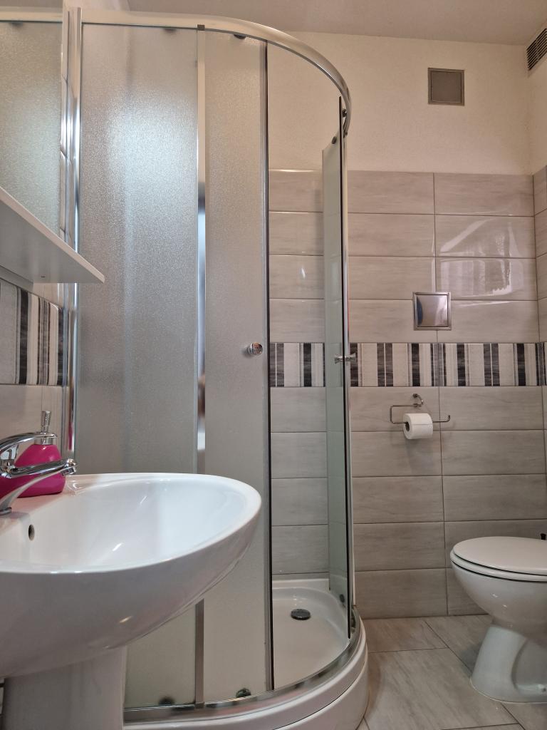 Polecam nocleg, mili gospodarze, apartament dobrze wyposażony, brakowało tylko czajnika elektrycznego, ale poza tym wszystko było w porządku. Łazienka jest przestronna. Blisko do sklepów i piekarni Konzum. Mieszkanie nie posiada balkonu, ale jest coś w rodzaju tarasu ze stołami i leżakami oraz parasolem. polecam.