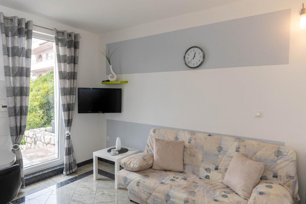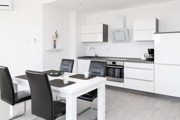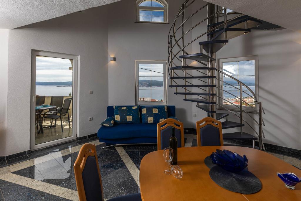 Nowoczesne i luksusowo wyposażone apartamenty z wyjątkowo dużym balkonem/tarasem w spokojnej okolicy Crikvenicy. Dom otoczony jest dużym ogrodem z roślinnością śródziemnomorską. Znajduje się 7 minut spacerem do plaży i 10 minut spacerem do centrum miasta.