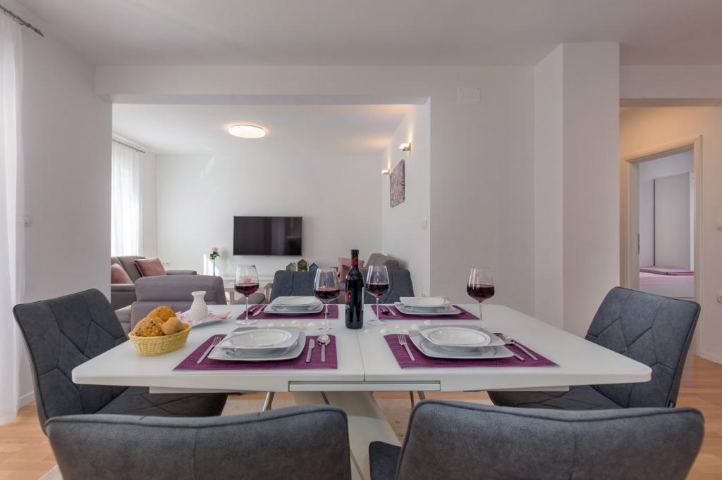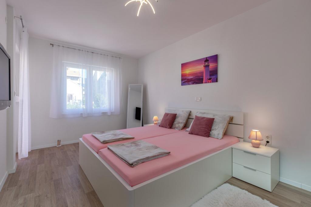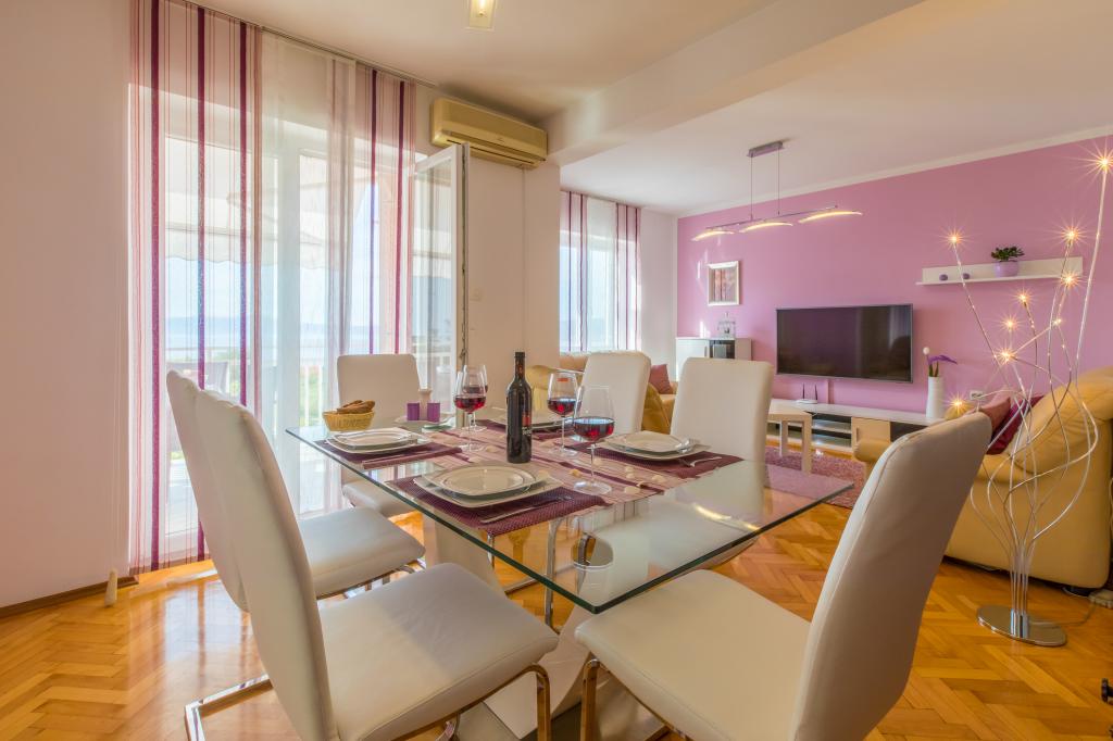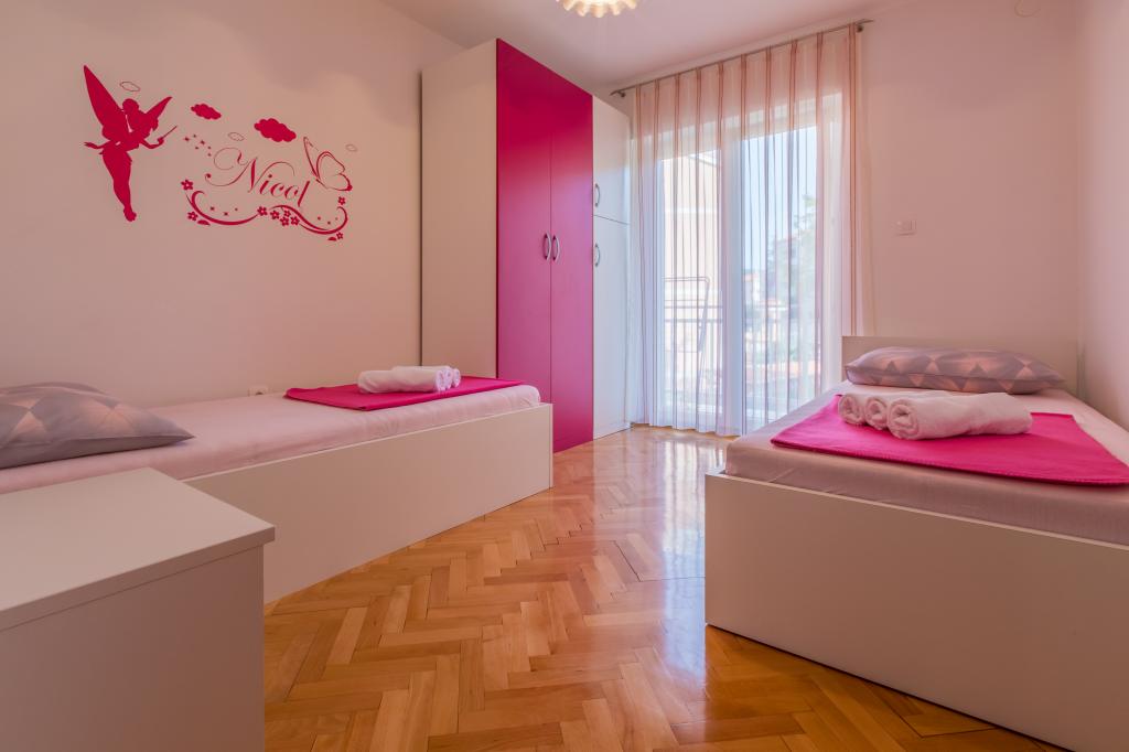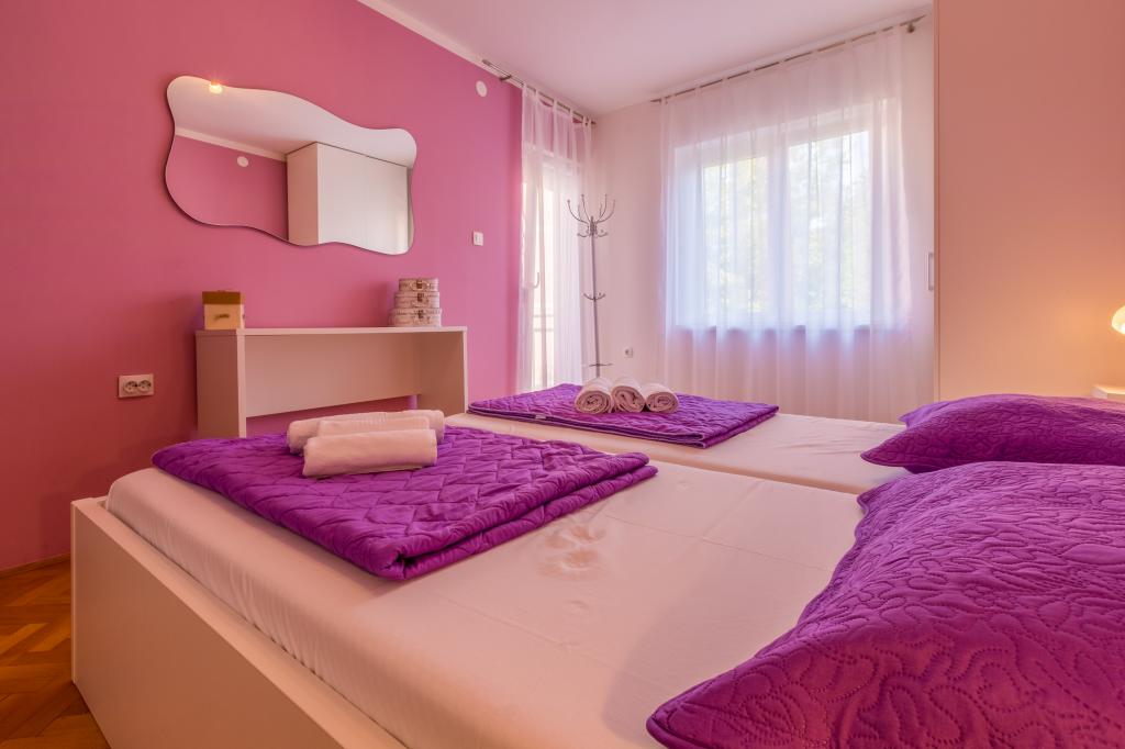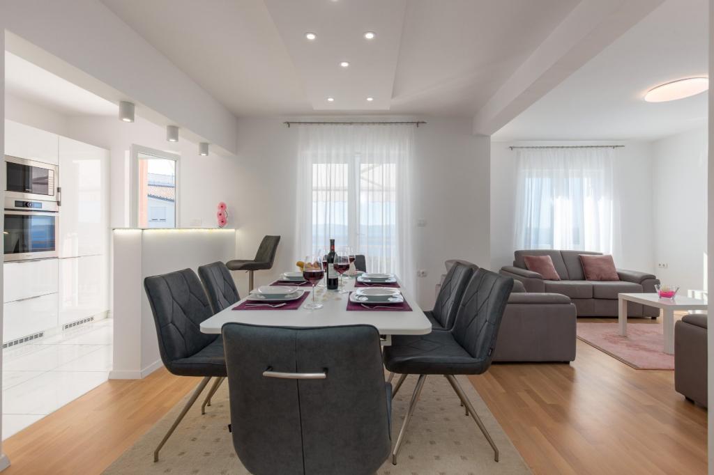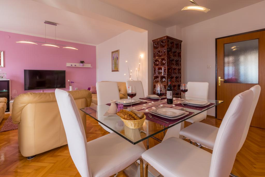 Apartamenty Nicol znajdują się w Crikvenicy, z pięknym widokiem na morze i wyspę Krk. Apartamenty Nicol to nowo wyremontowany budynek z dwoma nowoczesnymi apartamentami. Obiekt zlokalizowany jest w spokojnej części miasta. W budynku znajduje się parking przy budynku, duży taras oraz grill. Naprzeciwko budynku znajduje się plac zabaw dla dzieci, który jest ogrodzony i bezpieczny dla dzieci. Kuchnia wyposażona we wszelkie sprzęty AGD (zmywarka, piekarnik, mikrofalówka, lodówka z zamrażarką, ekspres do kawy, płyta indukcyjna) oraz naczynia do przygotowywania posiłków.