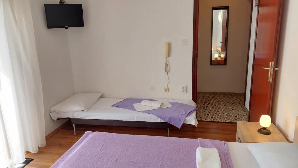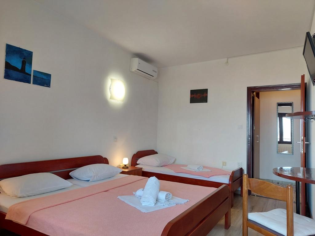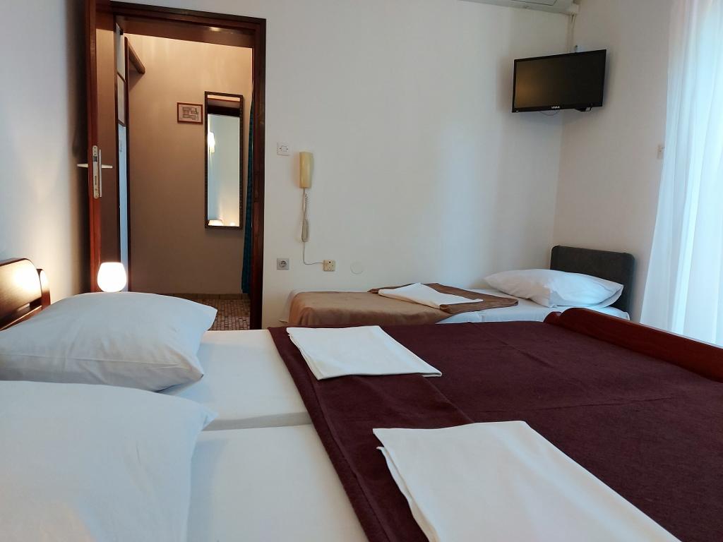 Pensjonat Klaudija, z rodzinną tradycją sięgającą ponad 40 lat, oferuje zakwaterowanie w 14 w pełni wyposażonych pokojach: z prysznicem, toaletą, balkonem (12 pokoi z widokiem na morze), centralnym ogrzewaniem, telefonem, telewizją satelitarną i klimatyzacją. Pozostałe udogodnienia obejmują: - prywatny parking, - salon z telewizją satelitarną, - sejf, - restaurację z barem i tarasem ogrodowym, - piękny ogród z fontanną. - bezpłatny internet (Wi-Fi). Nasi goście, jak i wszyscy inni goście, mają do dyspozycji restaurację z 80 miejscami i otwartym tarasem. W przyjemnej atmosferze i z życzliwą obsługą, mogą Państwo delektować się wieloma specjałami kuchni lokalnej i międzynarodowej.