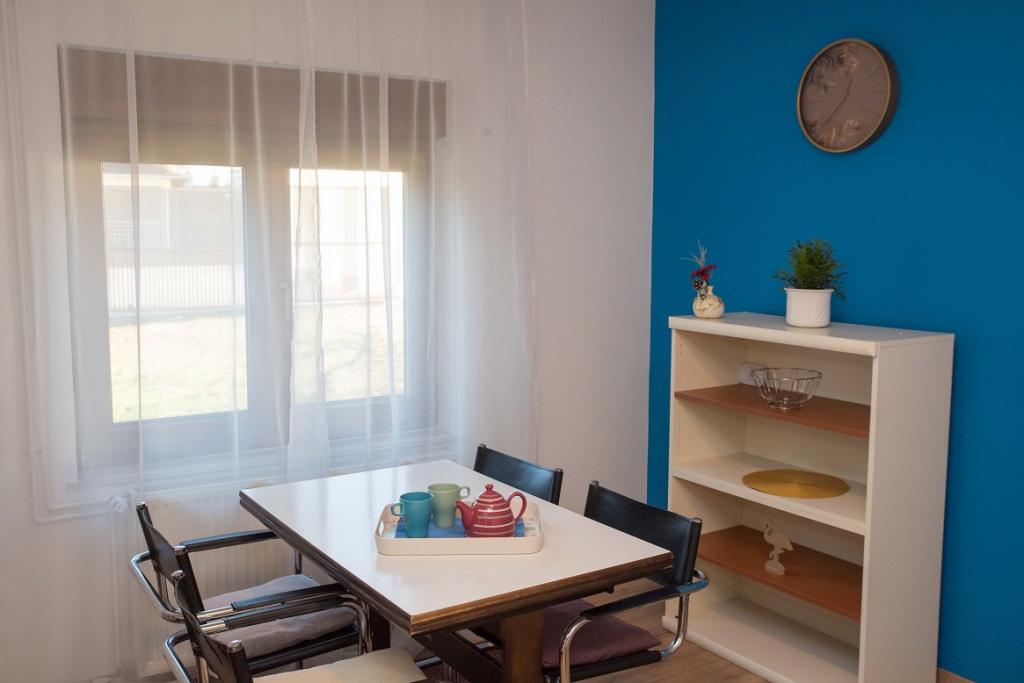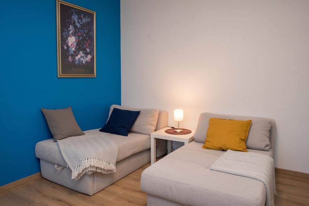 Nowocześnie urządzony apartament znajduje się w domu rodzinnym. To przyjemne miejsce do wypoczynku lub pracy, składające się z przedpokoju, sypialni z podwójnym łóżkiem, łazienki oraz jadalni z aneksem kuchennym i sofami z możliwością rozłożenia dwóch łóżek. Apartamenty znajdują się około 600 m od rynku, parku, Szpitala Specjalistycznego Rehabilitacji, Parku Termalnego i jeziora, a dotarcie do nich zajmuje do 7 minut spacerem. W pobliżu znajduje się sklep. Bliskość różnorodnych udogodnień, restauracji i kawiarni, aptek oraz ośrodka zdrowia, gwarantuje udany i przyjemny pobyt.