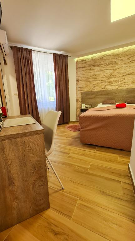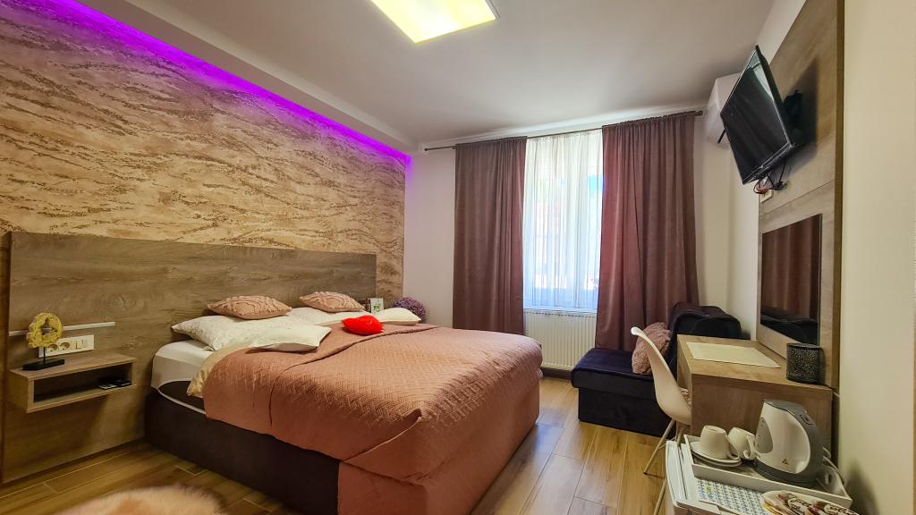 Pokoje wyposażone są w najwyższej klasy łóżka hotelowe, z wysokiej klasy materacami, w każdym pokoju znajduje się telewizor LCD, bezpłatny bezprzewodowy dostęp do Internetu, a własna łazienka urządzona jest według najnowocześniejszych standardów. Podobnie, każdy pokój posiada specjalne oświetlenie LED, aby stworzyć przyjemną atmosferę, która przyczyni się do wyjątkowej atmosfery podczas pobytu u nas. Przy obiekcie znajdują się miejsca parkingowe, których nie trzeba rezerwować osobno. W pokojach powitamy Cię drobnym gestem uwagi w postaci kawy rozpuszczalnej, batonów czekoladowych i cukierków, a jeśli chcesz, możesz również skorzystać z naszej oazy wellness i spa znajdującej się na terenie obiektu.