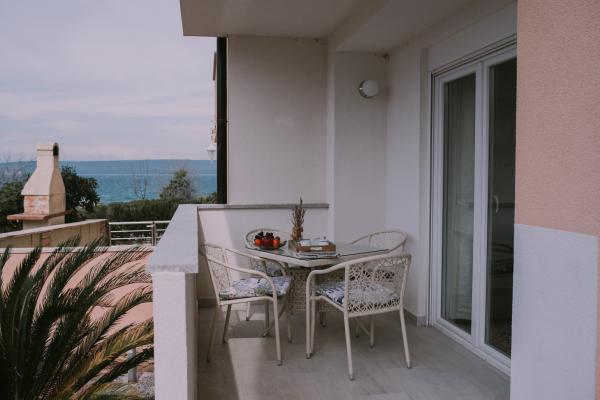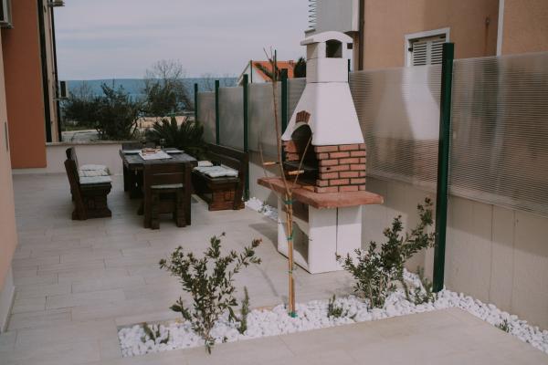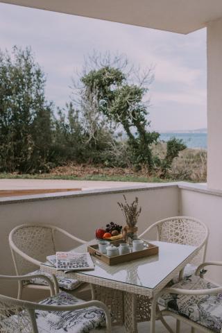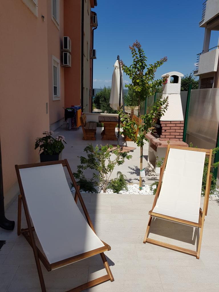 Nowy nowocześnie wyposażony apartament, minuta spacerem do plaży, parter z balkonem i dużym tarasem z widokiem. Idealny dla młodszych dzieci i rodzin szukających ciszy i spokoju z gałązkami krykieta i sumą fal!