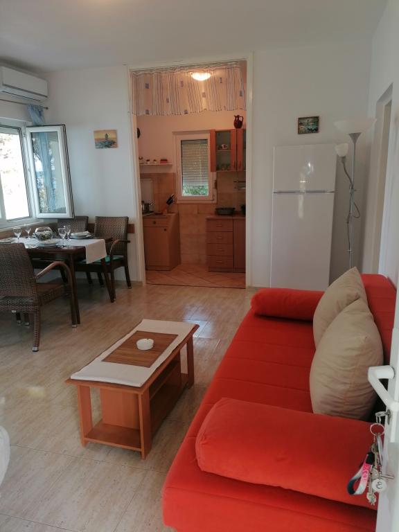 Mieszkanie jest doskonałe. Lokalizacja jest świetna. Dom posiada własny parking Posiada duży salon, kuchnię, dwie sypialnie, łazienkę i duży taras. Kuchnia jest w pełni wyposażona. Wszystko jest zgodne z opisem apartamentu. Z tarasu roztacza się piękny widok na morze i Velebit. Możesz zobaczyć plażę i sosnowy las przed domem. Gospodarze są przyjaźni. Plaża jest fantastyczna, zaledwie 50 kroków od apartamentu. Polecamy jeśli chcesz cieszyć się ciszą i spokojem. Nie jest zbyt tłoczno. Miejsce do zabawy. Woda jest świetna do pływania i jest wiele płycizn, tylko dla dzieci. Wracamy za rok!!!