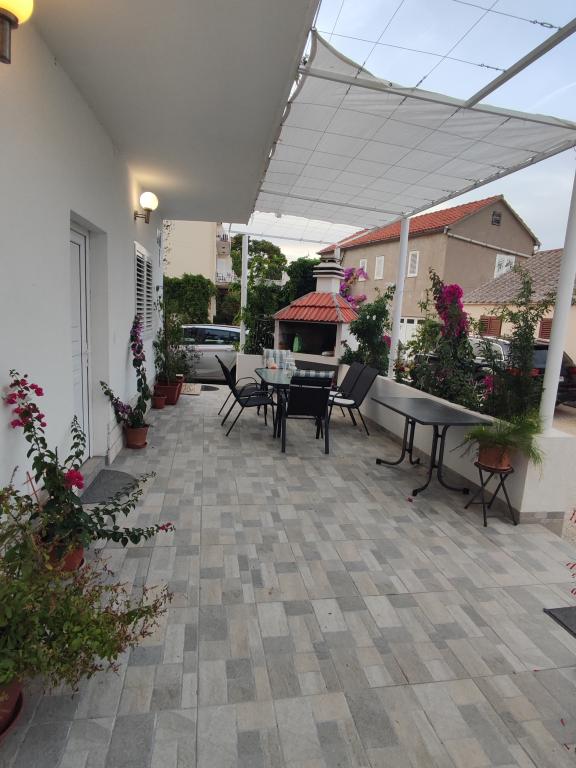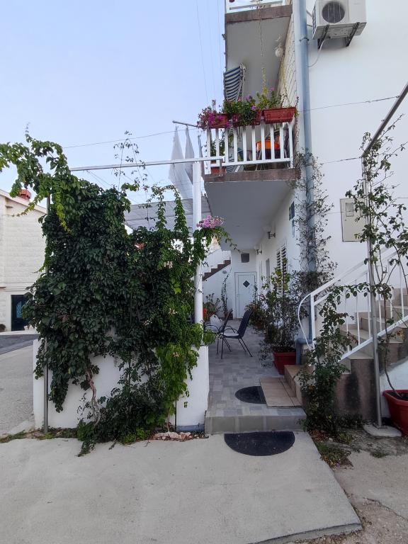 Mieszkanie składa się z sypialni (w której znajduje się łóżko małżeńskie 160x200 oraz łóżko pojedyncze 90x200, szafa), salonu połączonego z kuchnią. Kuchnia wyposażona jest we wszystkie niezbędne naczynia do gotowania, naczynia do gotowania, sztućce, talerze, czajnik, ekspres do kawy, mikrofalówkę, kuchenkę z piekarnikiem, lodówkę z zamrażarką. W salonie znajduje się stół jadalny z krzesłami, rozkładana sofa, klimatyzacja, TV. W łazience znajduje się kabina prysznicowa, toaleta, szafka z lustrem w której znajduje się suszarka do włosów. Z salonu jest wyjście na balkon z pięknym widokiem na morze. Na balkonie znajduje się stół i krzesła. Dom jest w drugim rzędzie do morza, 3 minuty spacerem od centrum, 5 minut spacerem od plaży.