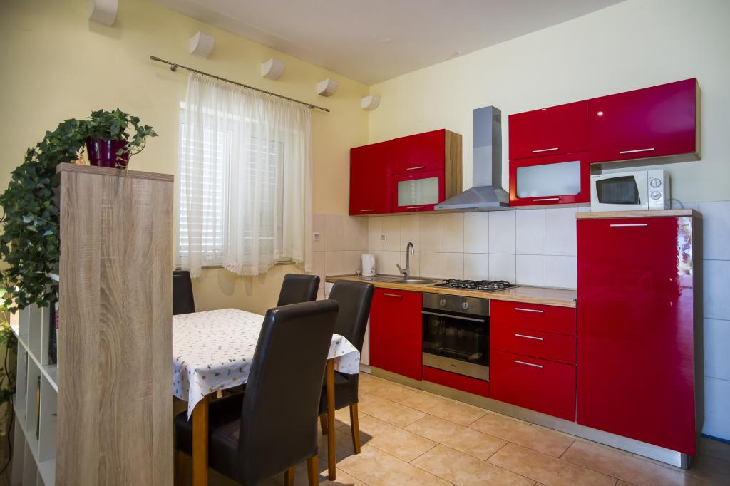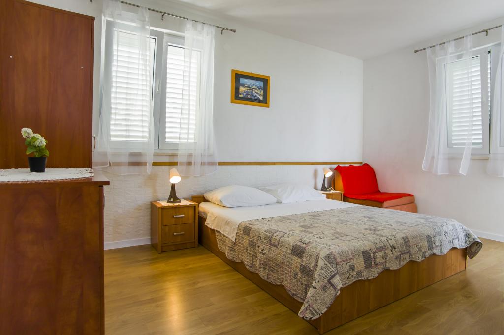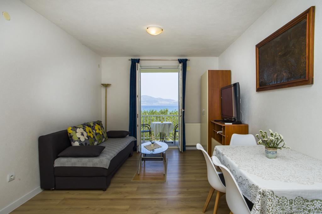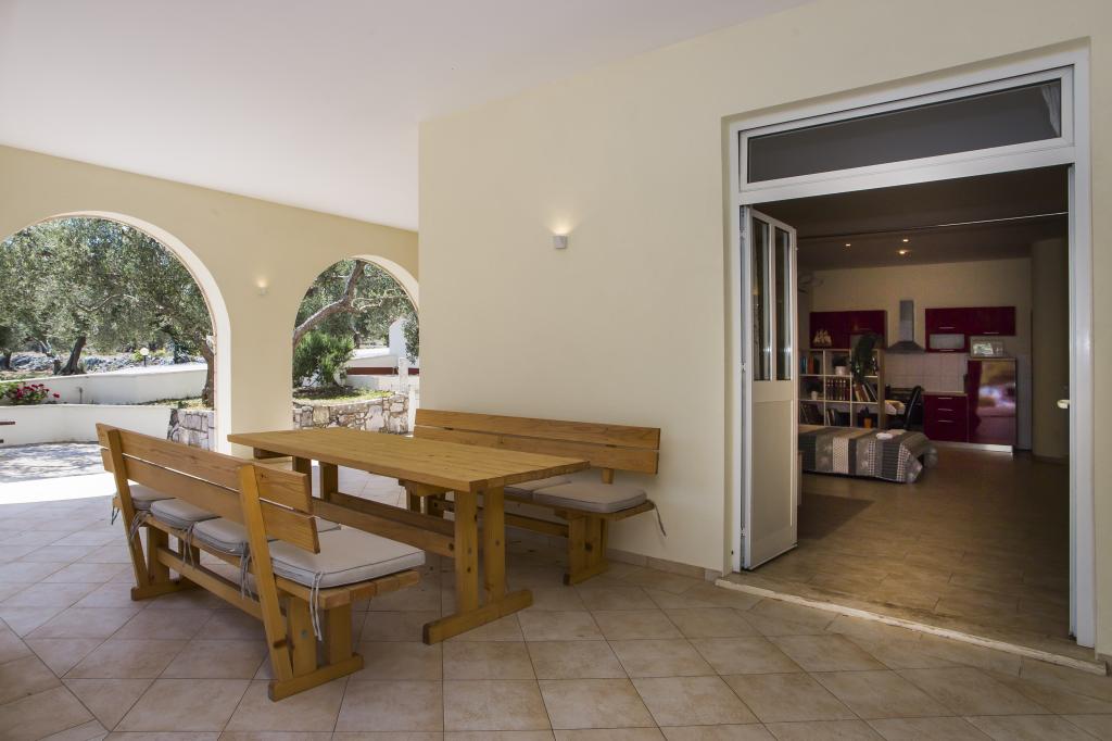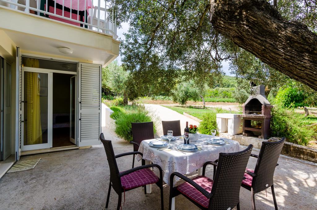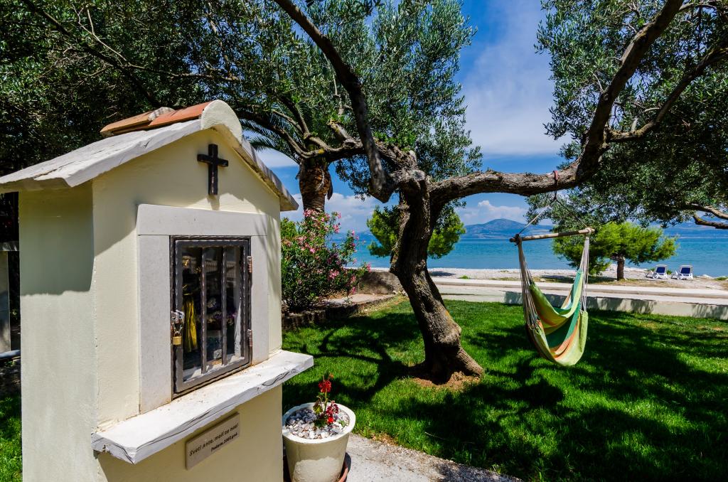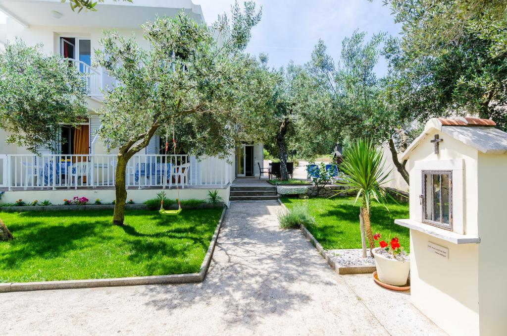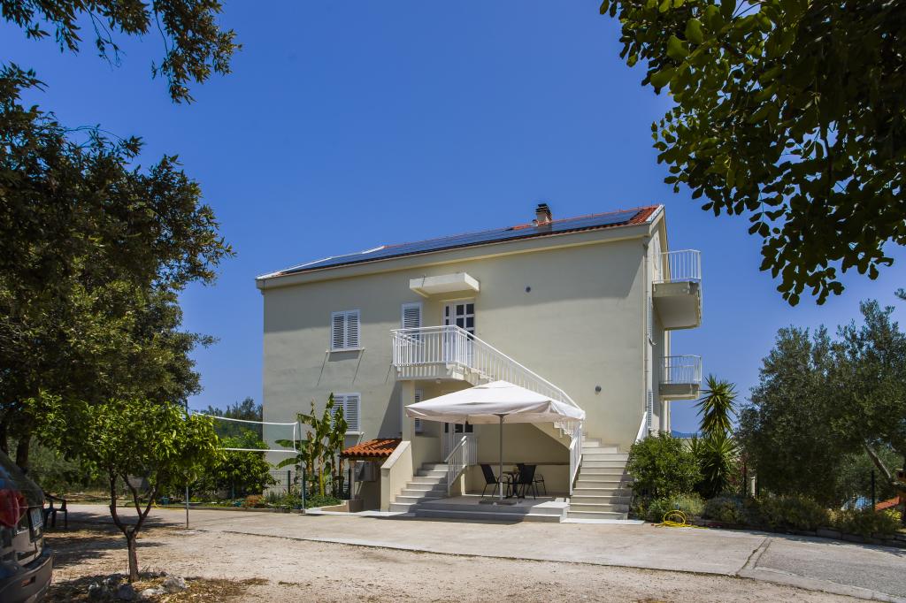 Dom znajduje się 20 metrów od kamienistej plaży z drobnym piaskiem w morzu. 500 metrów od miejscowości Drače (80 km od Dubrownika) położony jest w rozległym gaju oliwnym (10 000 m²). Na parterze znajdują się trzy apartamenty, a na piętrze jeden. Do dyspozycji gości jest bezpłatne Wi-Fi oraz dwa grille (duży, wspólny i mały, oddzielny dla apartamentu A1). Wszystkie pojazdy są zaparkowane. Wszystkie apartamenty wyposażone są w pralkę. Wszystkie apartamenty są klimatyzowane. W cenę zakwaterowania wliczone są trzy leżaki na plaży.