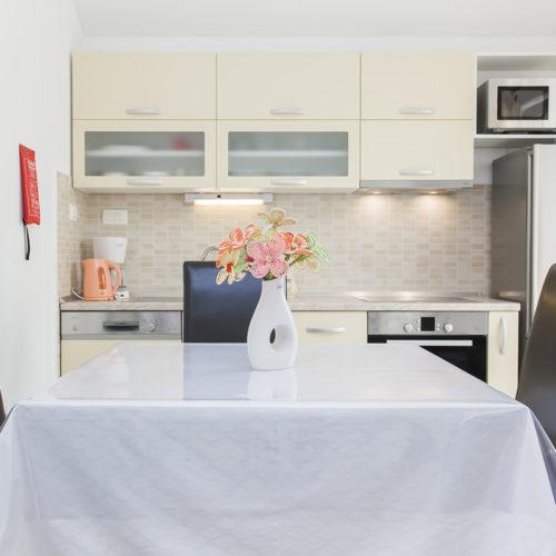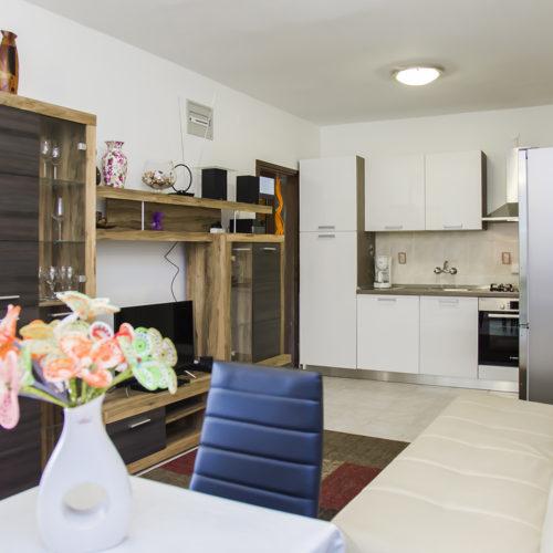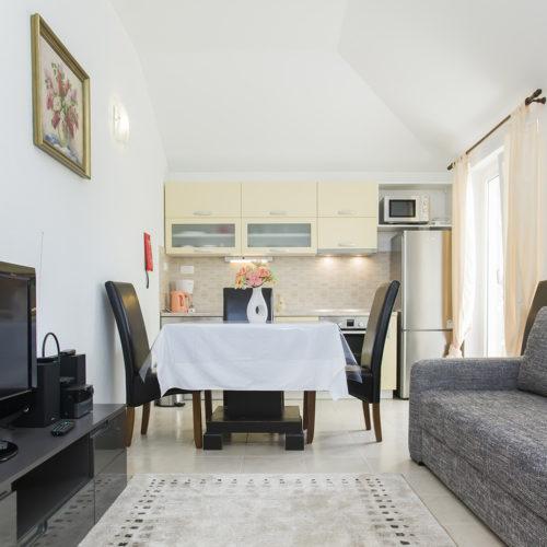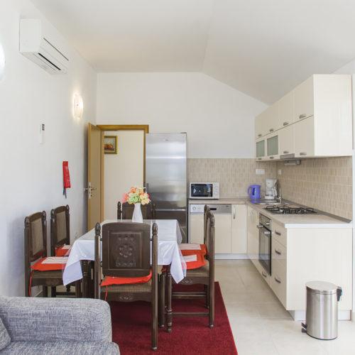 Apartament i lokalizacja super. Prywatna plaża parę kroków od apartamentu. Wyposażenie super łącznie z parasolami na balkonie i na plaży oraz leżaki. Wszystko co potrzeba w kuchni jest. W wyposażeniu grill dla każdego apartamentu. Duży parking.Najlepszy apartament jaki wynajmowaliśmy w Chorwacji. Super właścicielka. Z całego serca polecam