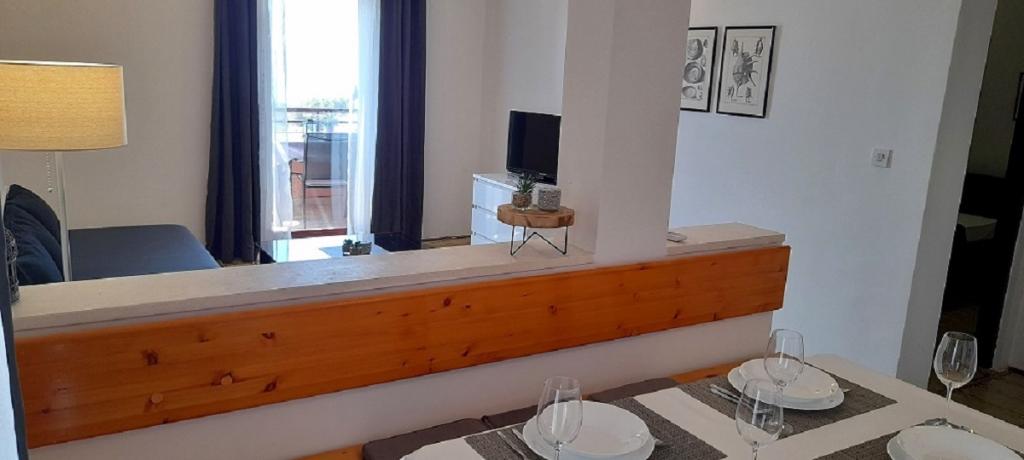 Apartament Mima znajduje się w miejscowości Drage, w zatoce Dolaška draga, gdzie znajduje się duża plaża żwirowa i niezliczone małe plaże z kamienia, otoczone gęstym lasem sosnowym, który zapewnia naturalny cień. Do dyspozycji Gości jest także wspaniała promenada „Lungo Mare”, park dla dzieci oraz kilka przytulnych kawiarni. Mieszkanie znajduje się na drugim piętrze i oferuje spektakularny widok na archipelag Kornati. Do plaży jest 300 m. Mieszkanie ma jedną sypialnię, łazienkę, kuchnię z salonem z rozkładaną sofą i balkon z pięknym widokiem na morze. Do dyspozycji gości klimatyzacja, wifi w mieszkaniu, internet, zmywarka, kuchenka mikrofalowa... Przed apartamentem zapewnione jest miejsce parkingowe.